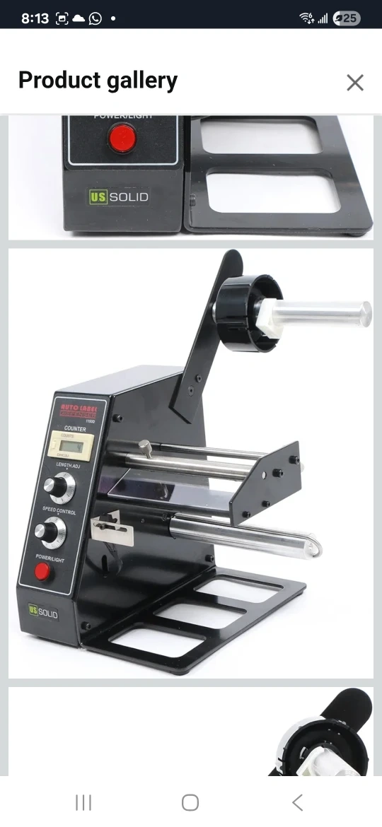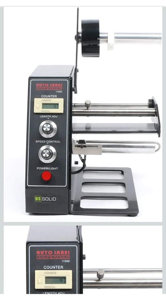 Selling a US Solid Auto Label Dispenser model 1150D. It features a counter, length adjustment, speed control, and a power/light button. Great for dispensing labels quickly and efficiently!
