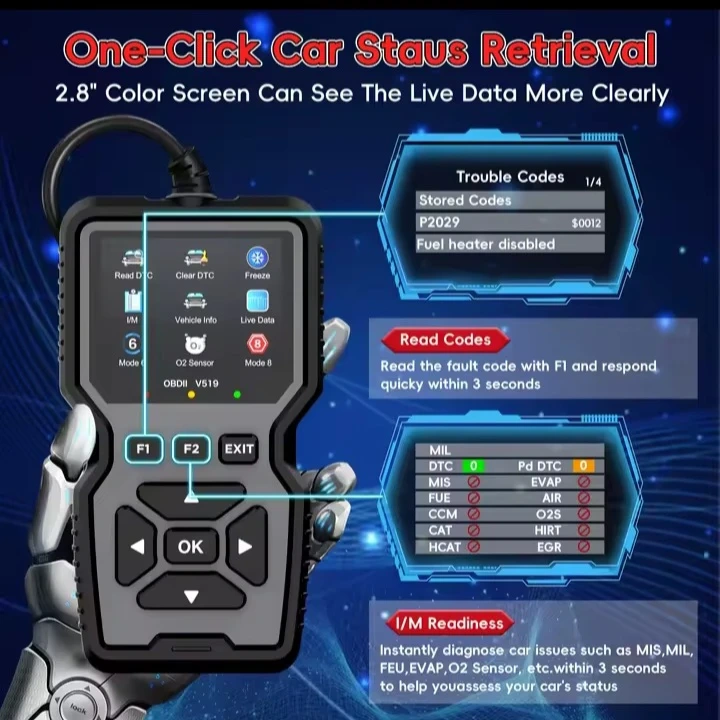Selling a brand new never used in box. This OBDII scanner diagnoses car issues with its 2.8" color screen. It supports full OBD2 modes, battery health checks, smog checks, and DTC lookups with a 35000+ database. It offers live data streams and I/M readiness checks. This tool is compatible with most vehicles after 1996 and supports 10 languages. Pick-up Walkerville/East Windsor. Please check out my other listing.