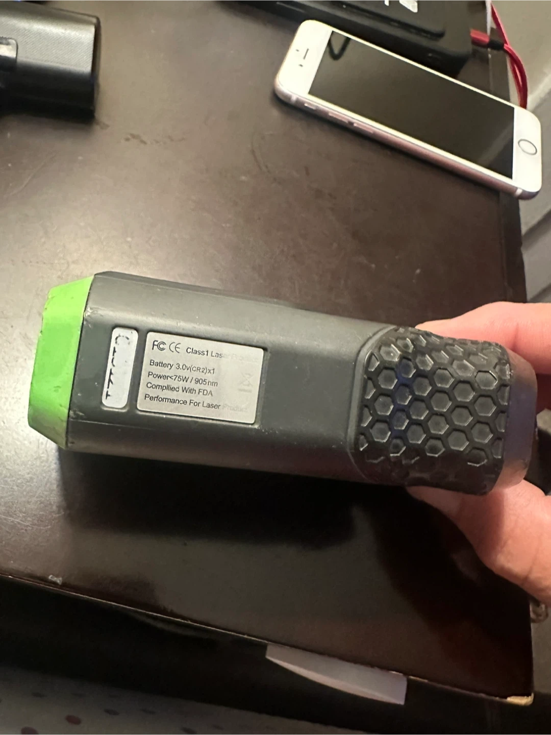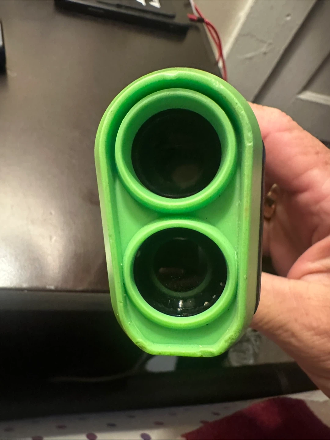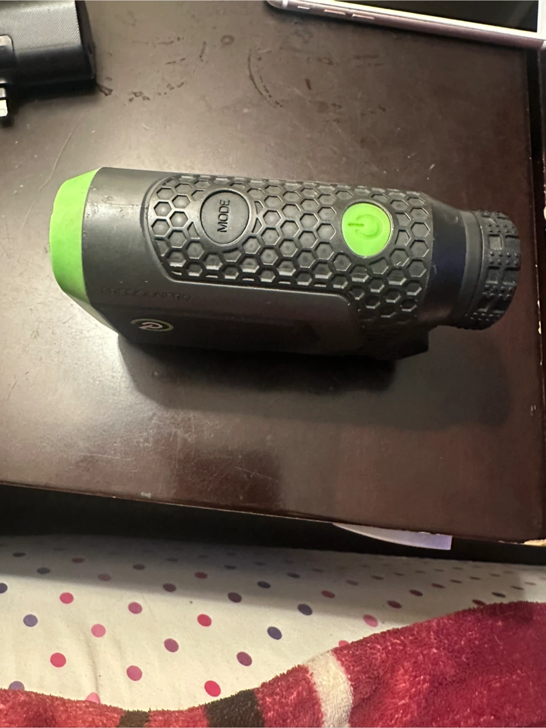 This is a Precision Pro NX9 golf rangefinder. It has a grey and green design. It's ideal for golfers looking for accurate distance measurements on the course. Features include multiple modes for different playing conditions.