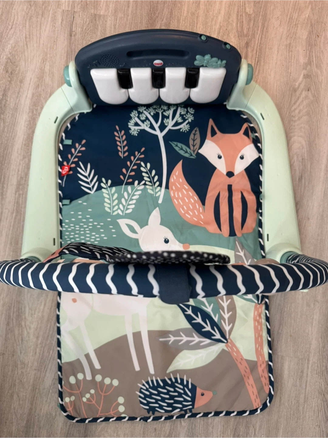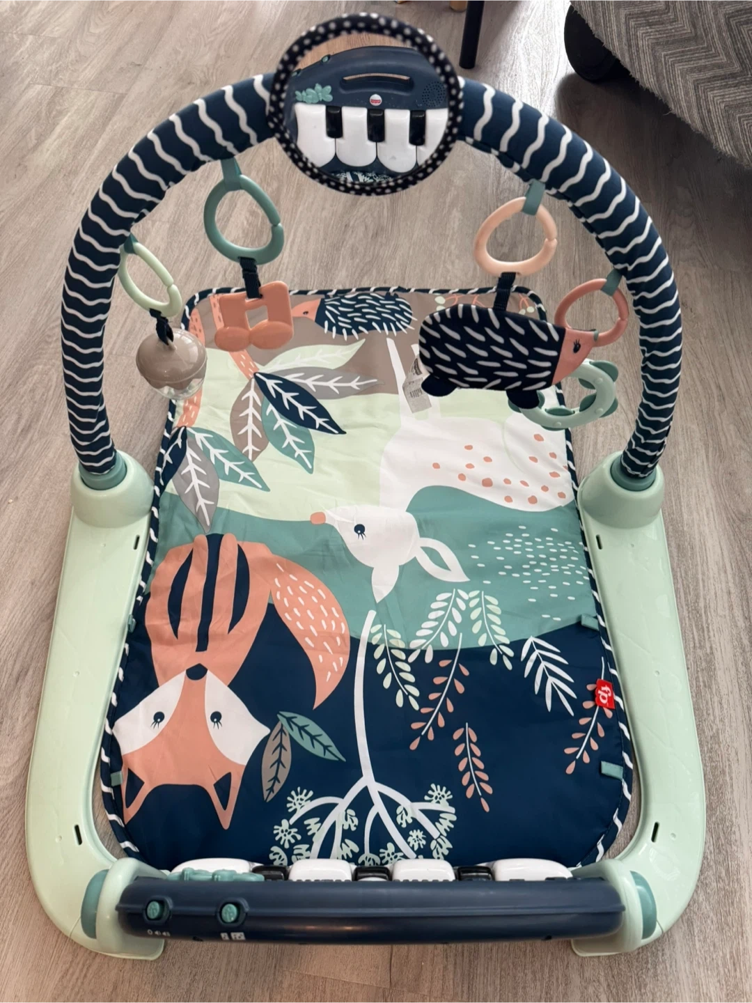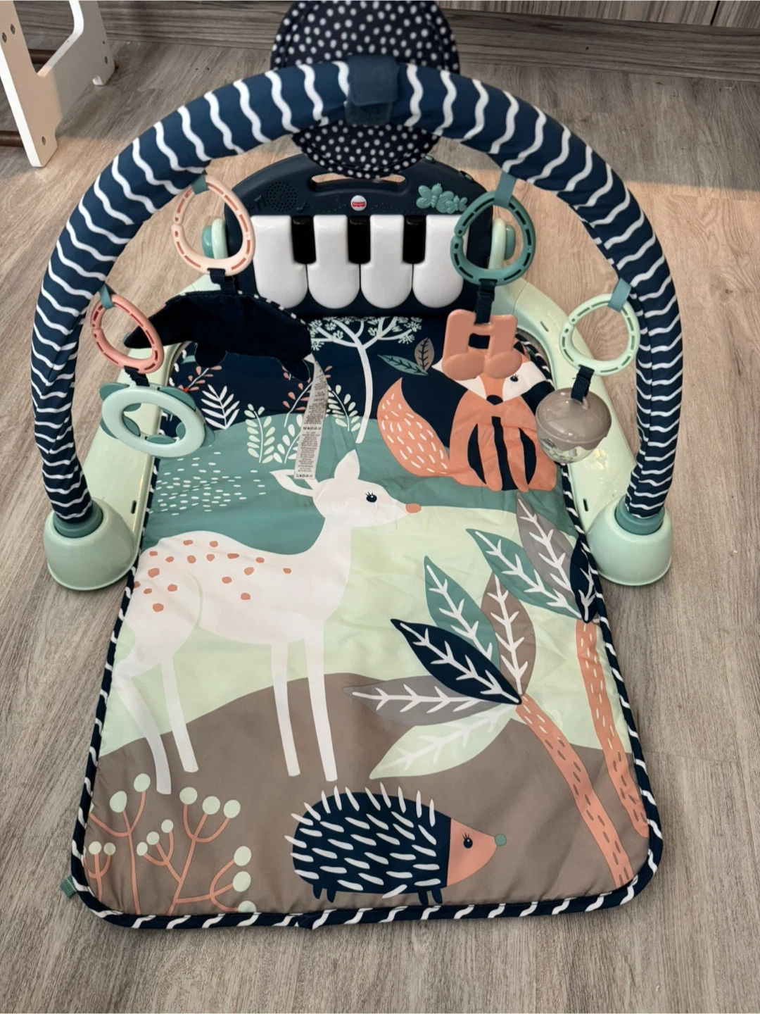 This is a Fisher-Price Deluxe Kick & Play Piano Gym in perfect condition and ready for a new baby to enjoy. The piano keys are perfect for little ones to kick and play, encouraging their development. And it grows with the child as it can be used later with a sitting baby or cary it anywhere.