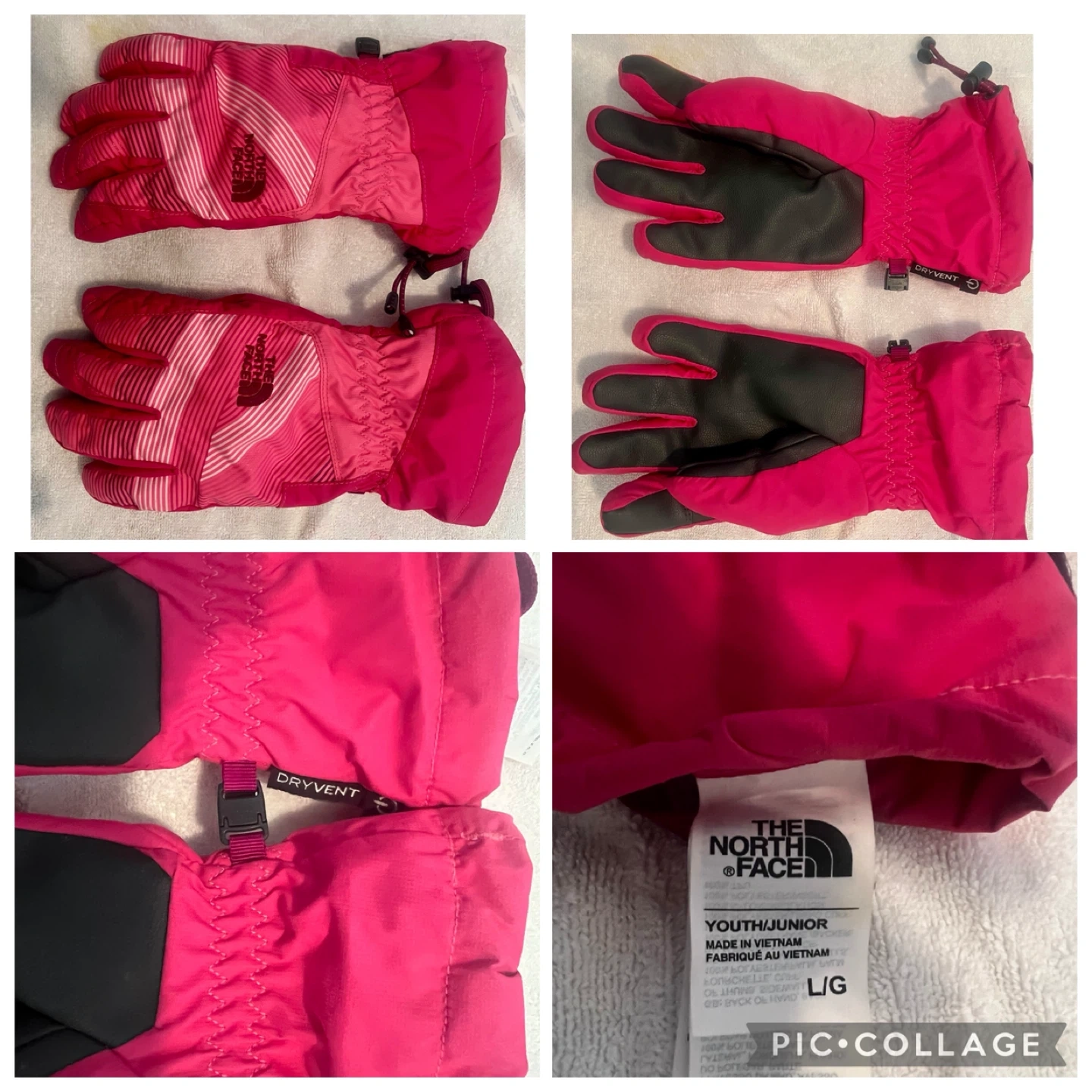 Here are a pair of The North Face ski gloves for youth or juniors. They are size L/G and feature DRYVENT technology. Great for keeping hands warm and dry on the slopes!