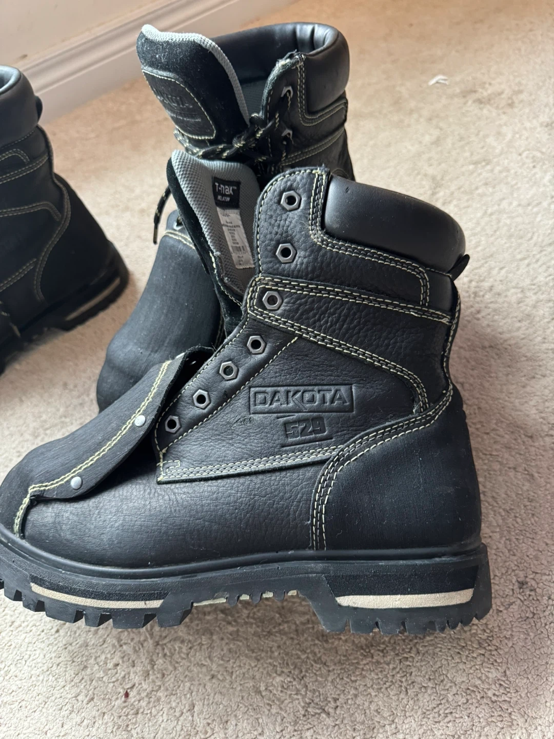 Selling a pair of Dakota 529 work boots in black. They are in good condition and ready for some tough jobs! The Tarantula soles offer great grip and stability