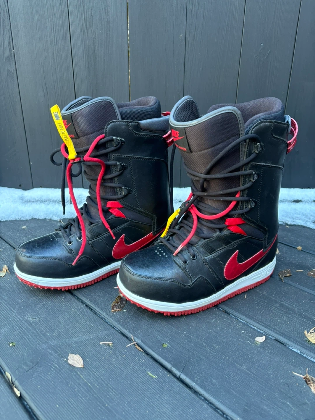 Selling a pair of Nike snowboarding boots in excellent condition. They are black with red accents and a size 9. Perfect for hitting the slopes this winter!
