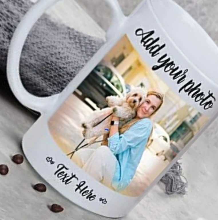 I'm selling a custom photo mug, perfect for a personalized gift! It's an 11oz white mug that can be customized with your picture, logo, or text. Great for birthdays, Christmas, or any special occasion