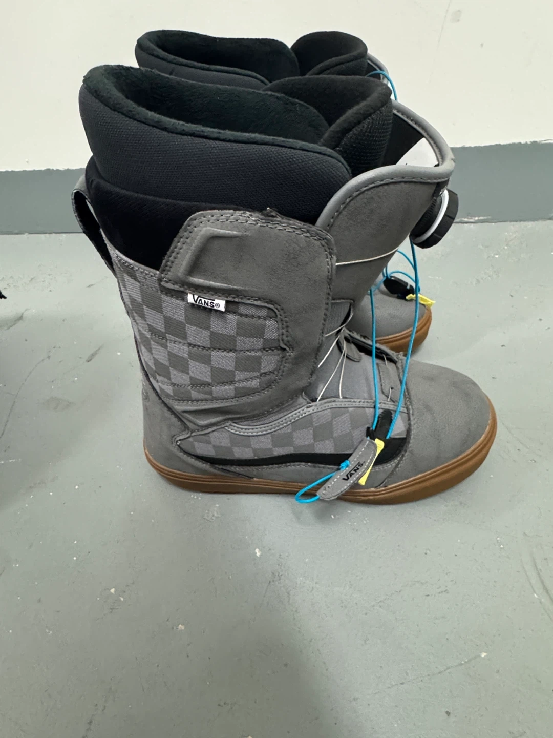Vans Aura OG snowboard boots size 11 Men’s. They feature the classic Vans checkerboard pattern and a BOA lacing system for easy adjustments on the go. Used 5 times like new.