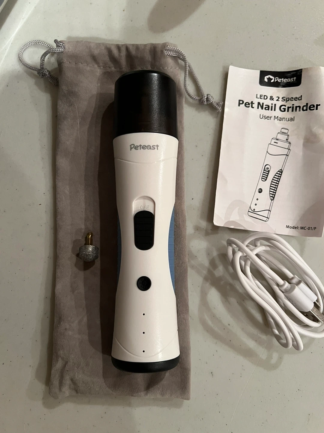 Selling a Peteast LED & 2 Speed Pet Nail Grinder. It's in great condition and comes with the user manual, charging cable, and a carrying bag. The model number is MC-01/P.