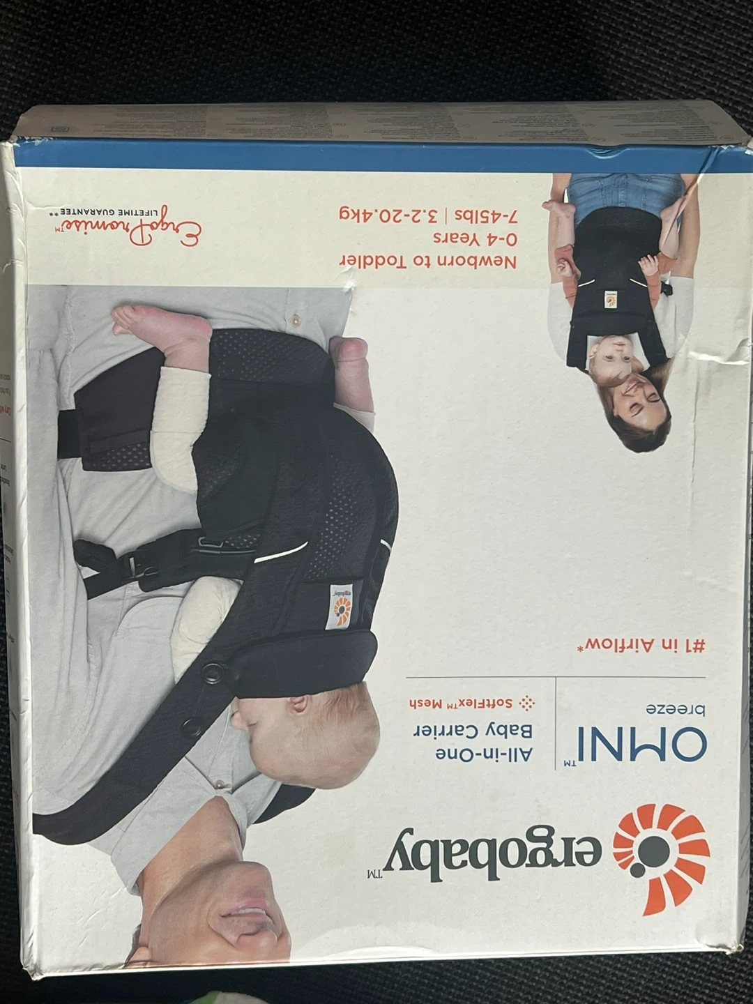 Selling an Ergobaby Omni Breeze baby carrier in Onyx Black! This all-in-one baby carrier is suitable from newborn to toddler (7-45lbs / 3.2-20.4kg). It's in great condition and comes with the box! This carrier is designed with SoftFlex Mesh for maximum airflow, keeping both you and your little one cool and comfortable.