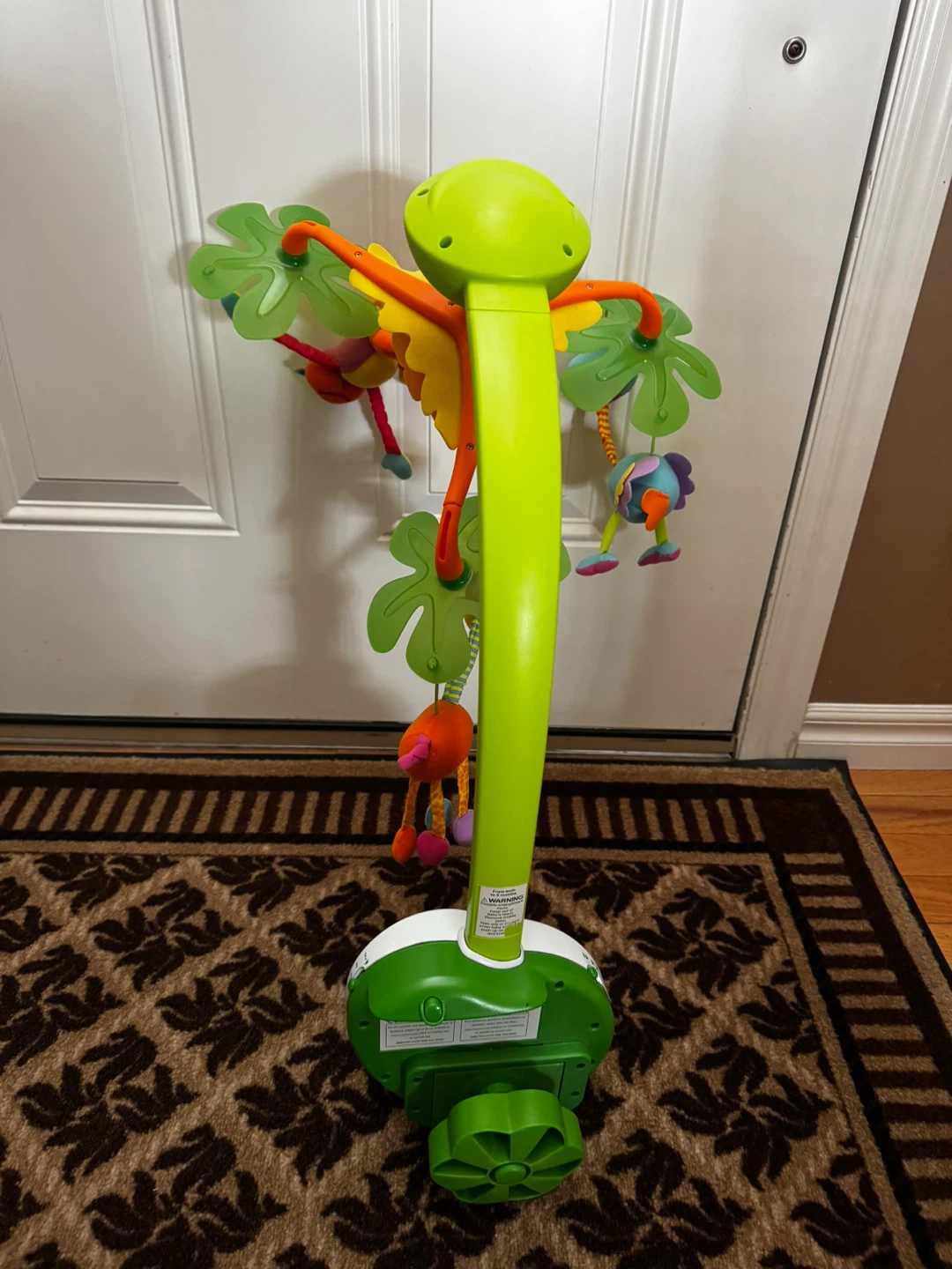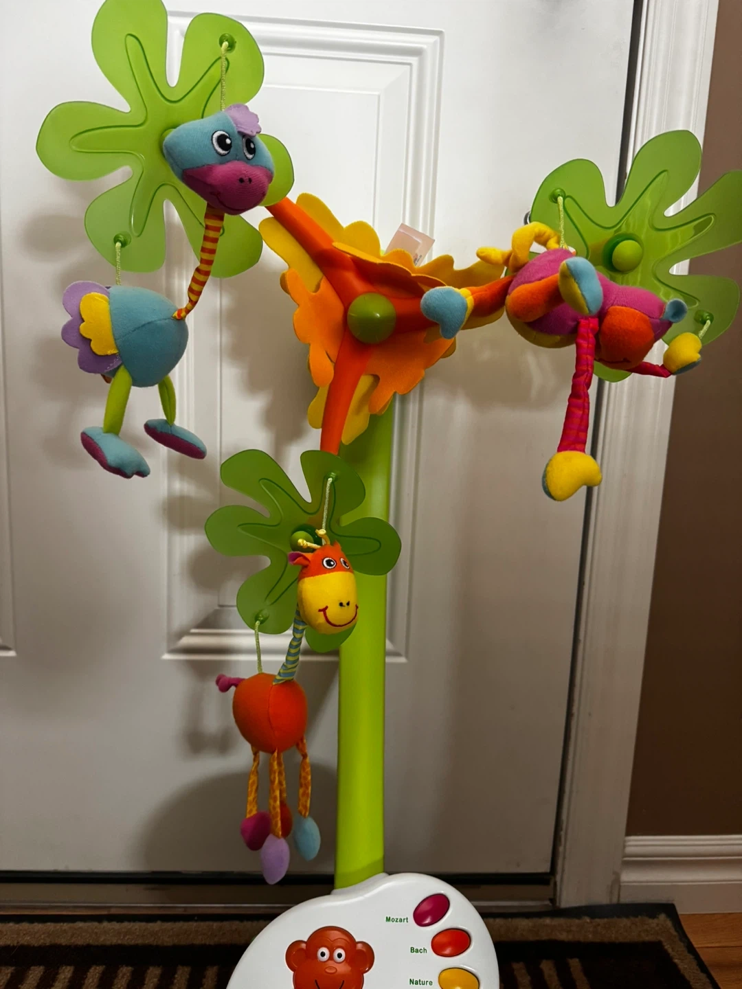 Selling a Tiny Love mobile soother! It plays Mozart, Bach, nature sounds, and island sounds to help soothe your little one. It's in great condition and ready for a new home! Only thing missing is the back cover of the remote controller.
