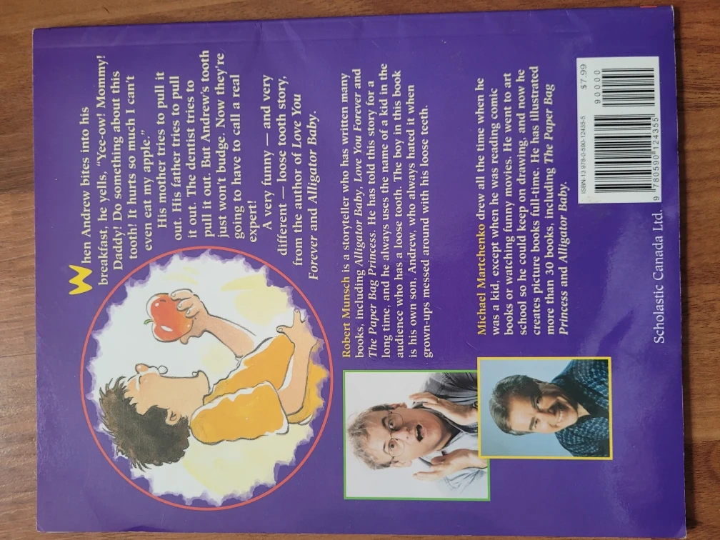 This is a used copy of Robert Munsch's "Andrew's Loose Tooth". It's a funny story for kids about dealing with loose teeth! This book is in good condition, ready for another child to enjoy.