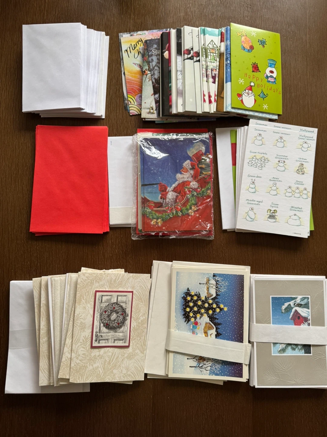 Selling a collection of Xmas holiday cards with assorted designs. Perfect for sending out Christmas greetings to friends and family this year! You'll find a variety of festive and charming cards to choose from.