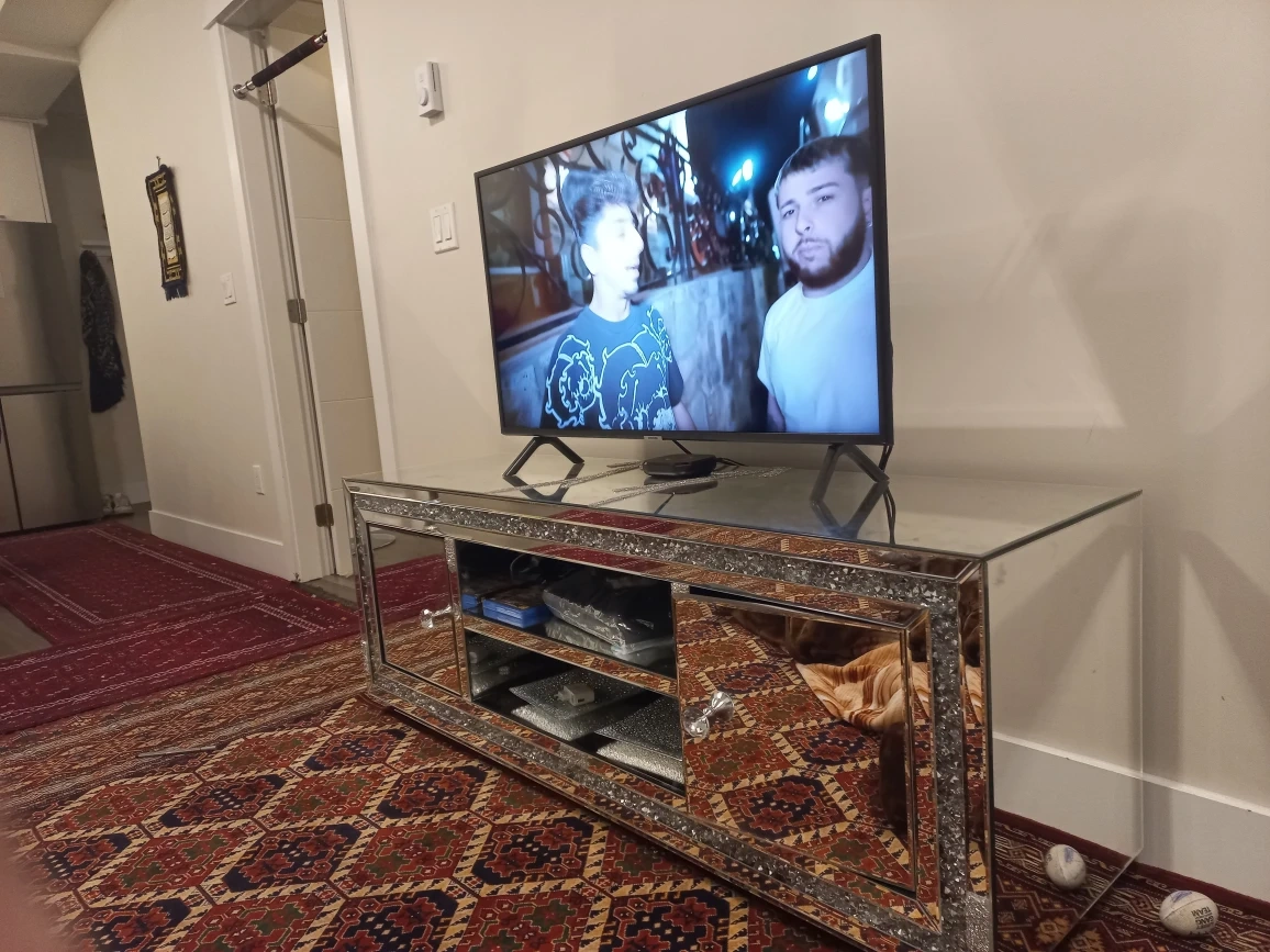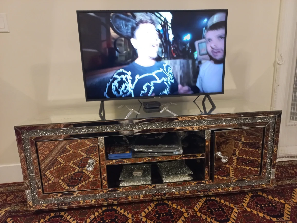 Selling a mirrored TV stand. It's in good condition and would look great in any living room!
