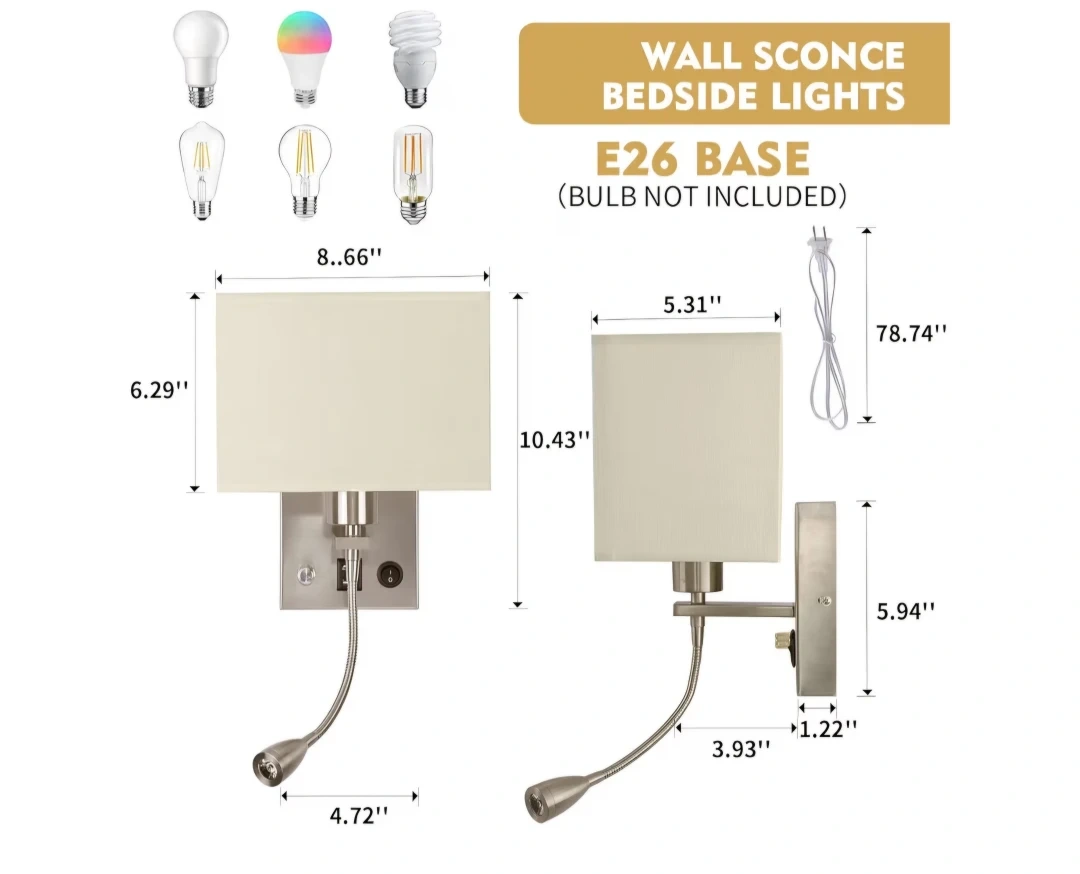 Wall Sconce Plug in Cord Set of 2(NEW)
