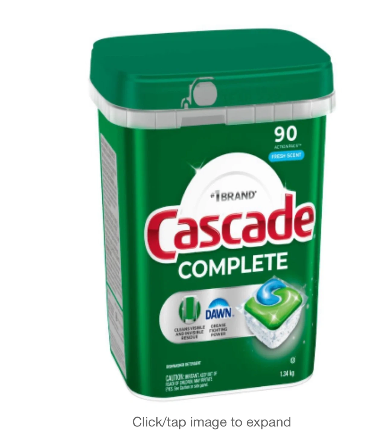 Selling a container of Cascade Complete dishwasher pods, containing 90 actionpacs. They feature a fresh scent and Dawn grease-fighting power. Great for keeping your dishes sparkling clean
