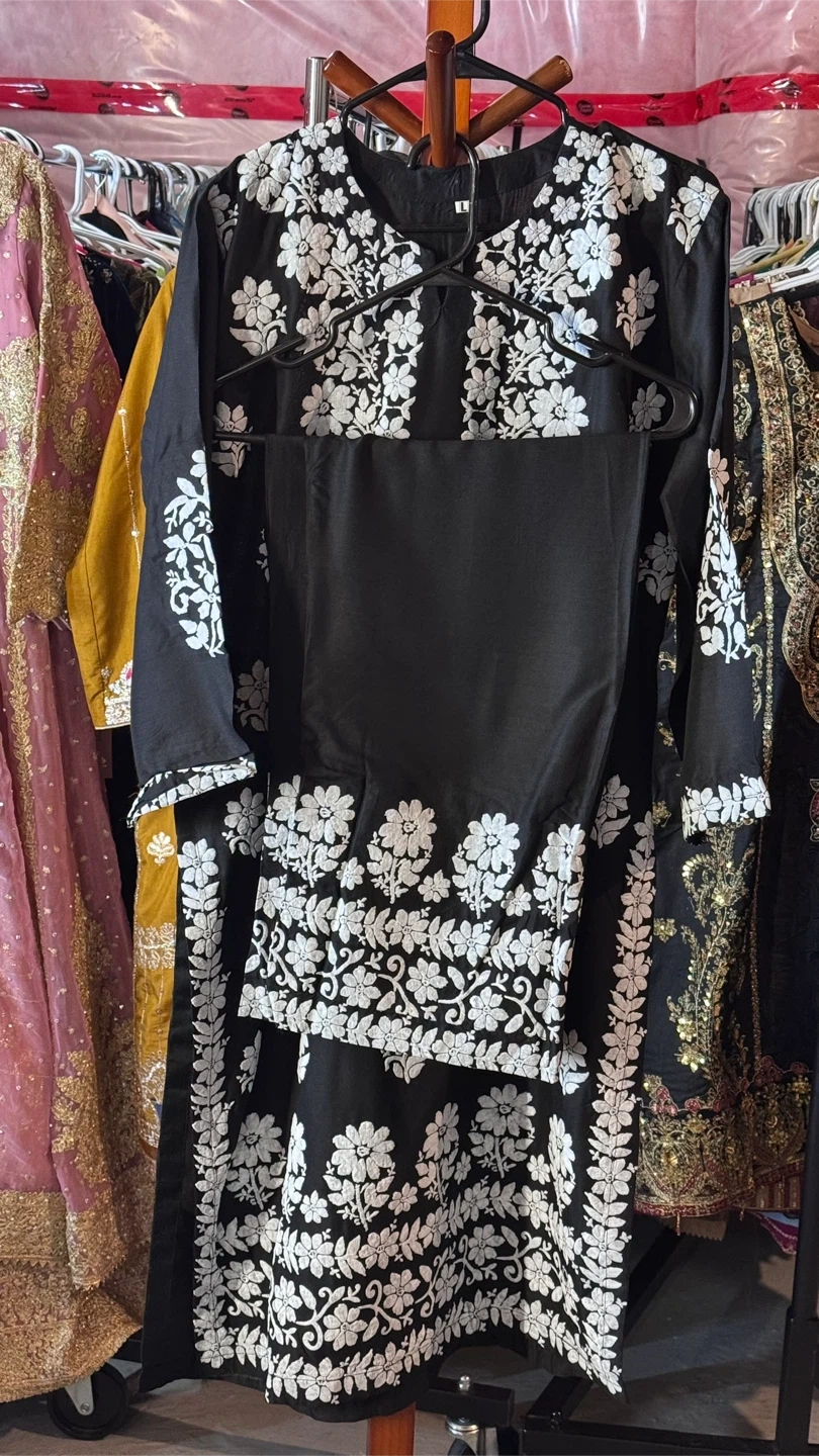 Selling a beautiful black kurta set with white floral embroidery! It's in great condition and perfect for any special occasion or everyday wear. The intricate floral design adds a touch of elegance to the classic black colour. It's a stylish and comfortable outfit!