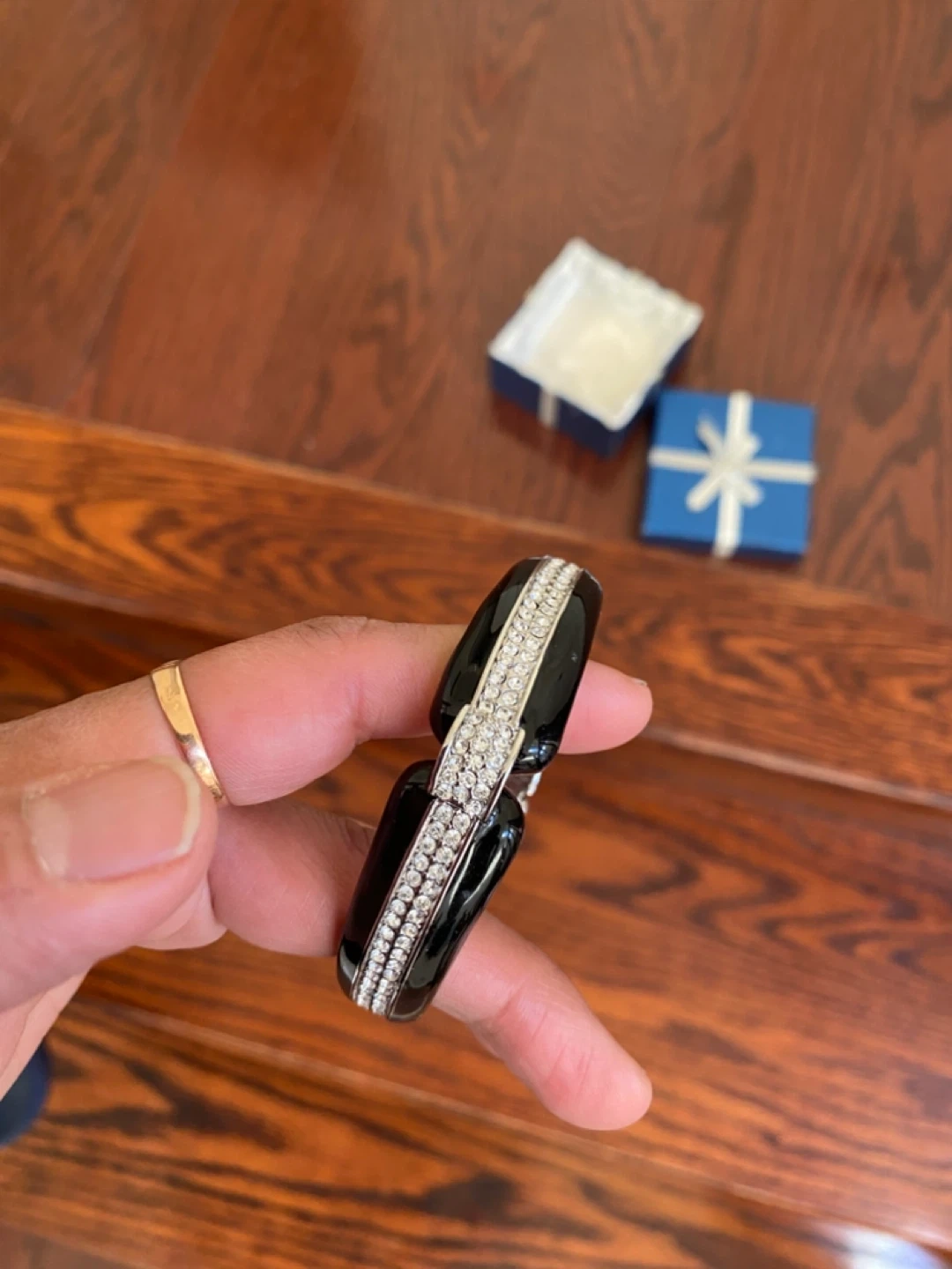 Selling a lovely bangle bracelet! It features a black and rhinestone design. It comes with a box