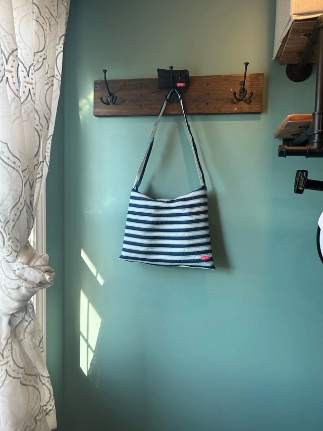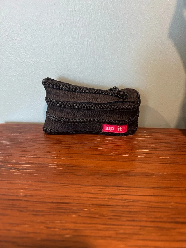 Add a splash of fun to your accessories with this Zip-It purse, featuring a unique design made entirely of zippers, accompanied by a matching coin purse. This is in new condition and ready for your next adventure. Specifications: - Brand: Zip-It - Includes: One purse and one coin purse - Material: Zippers - Colour: Blue and white stripe, black