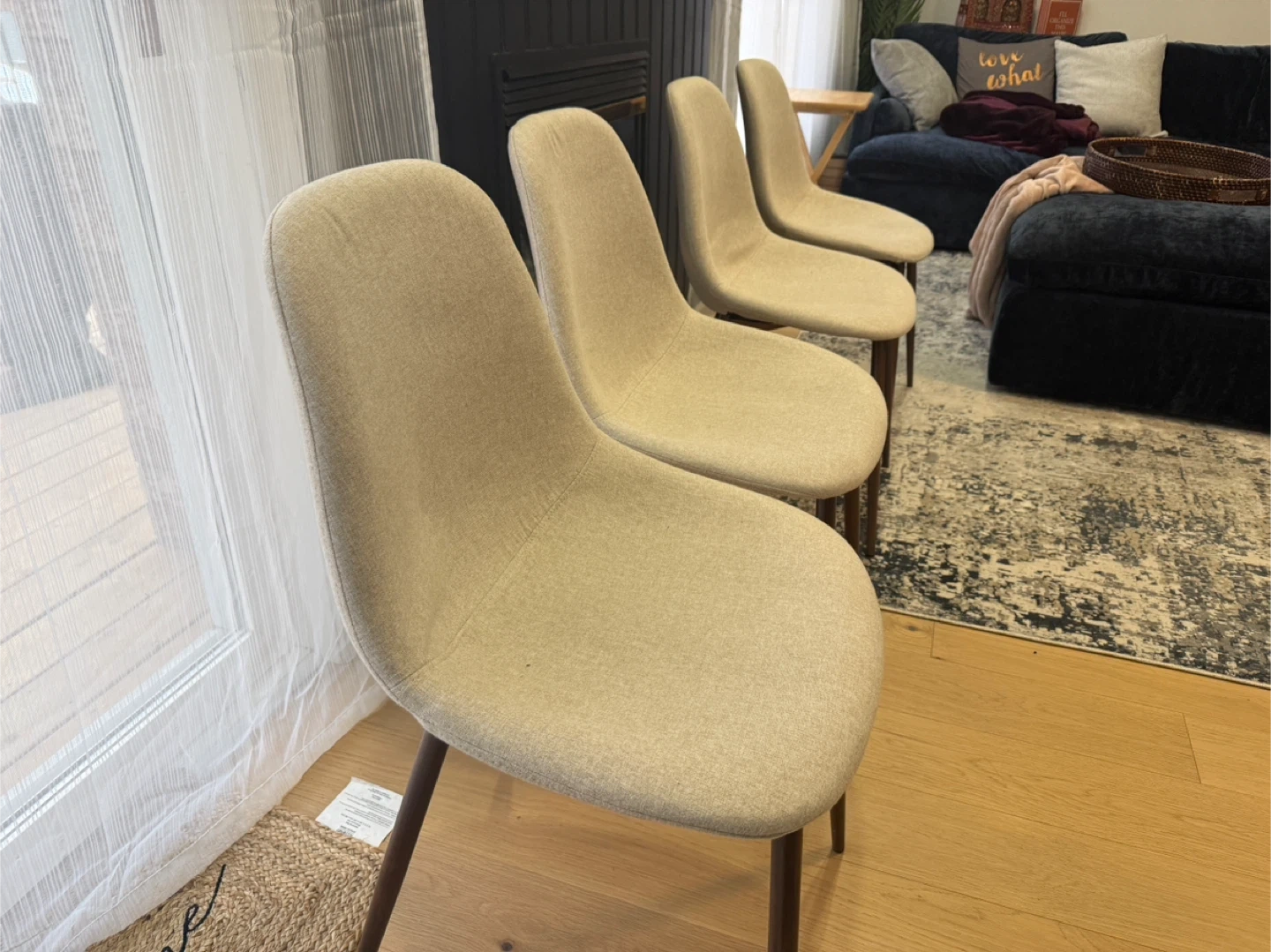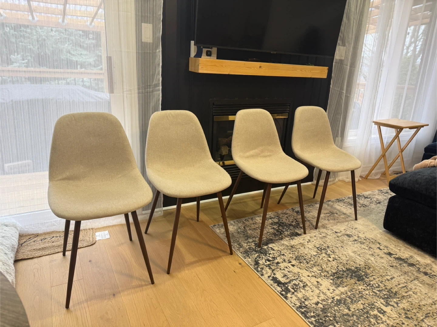 Selling a set of 4 dining chairs. They're a lovely beige colour and in great condition. Perfect for adding a touch of warmth to your dining area! Pick up near Oshawa centre