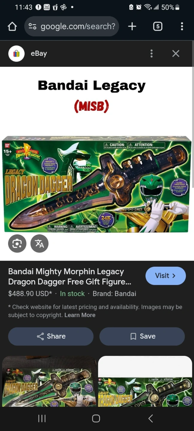 Selling a Bandai Mighty Morphin Legacy Dragon Dagger. It comes with the original box. This is a great collectible for any Power Rangers fan!