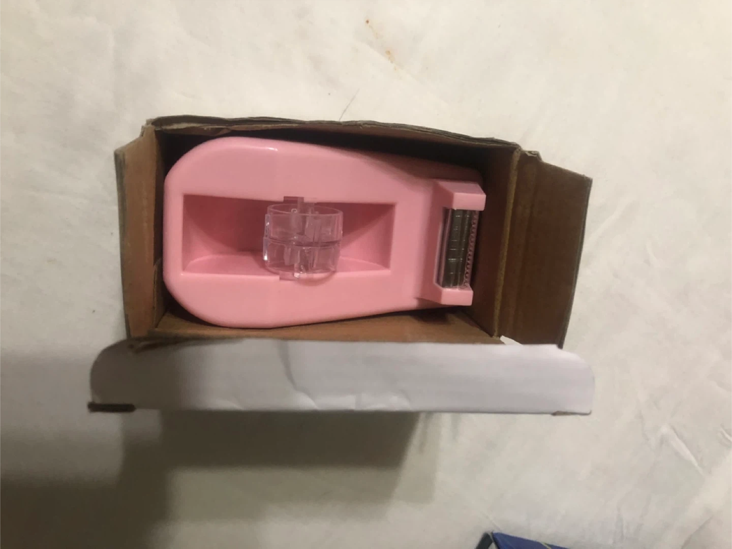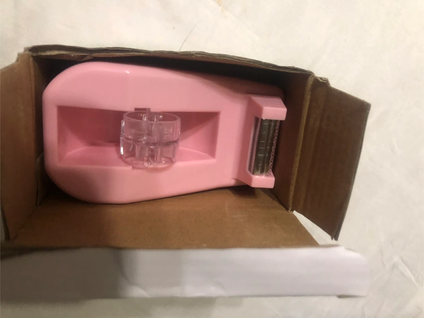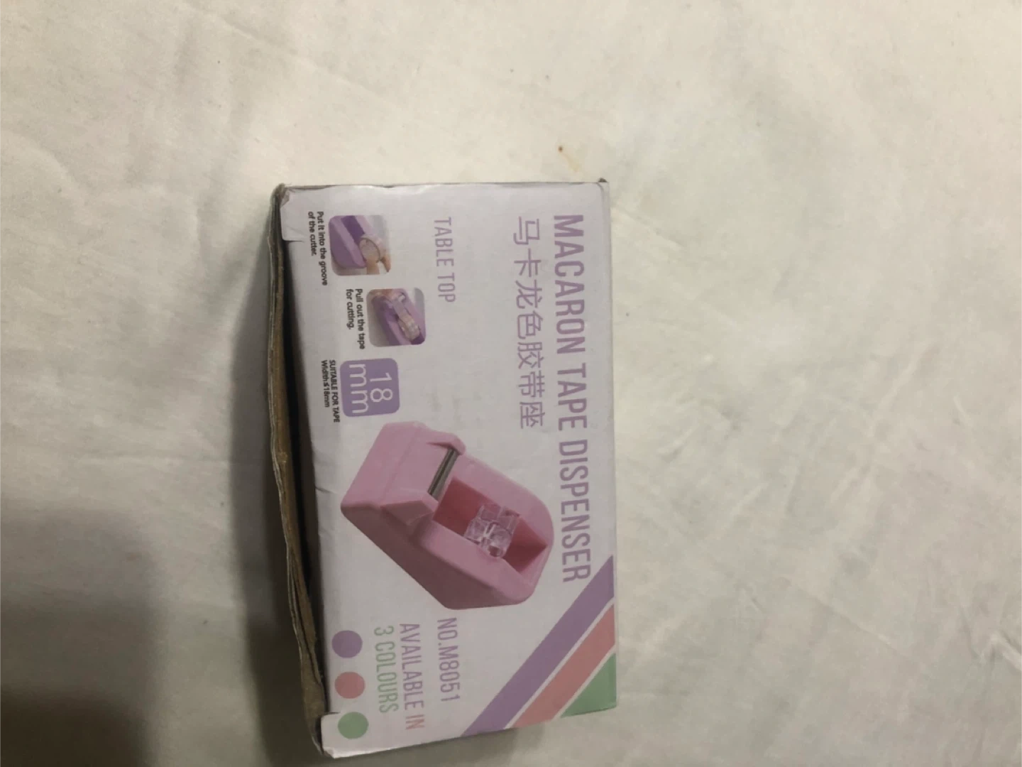 Selling a cute pink Macaron Tape Dispenser! It's a tabletop dispenser that can hold 18mm tape. Comes with the original box!