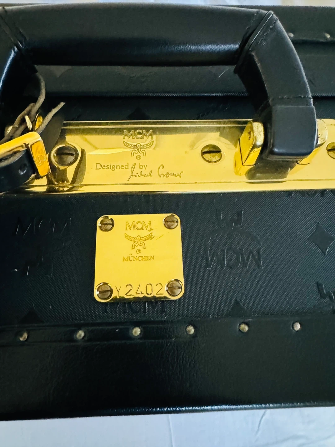Features the original Michael Cromer signature plate, working combination locks, and the classic orange MCM monogram interior.