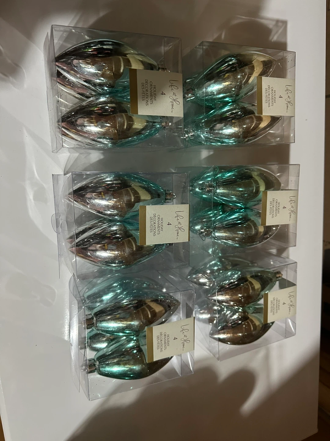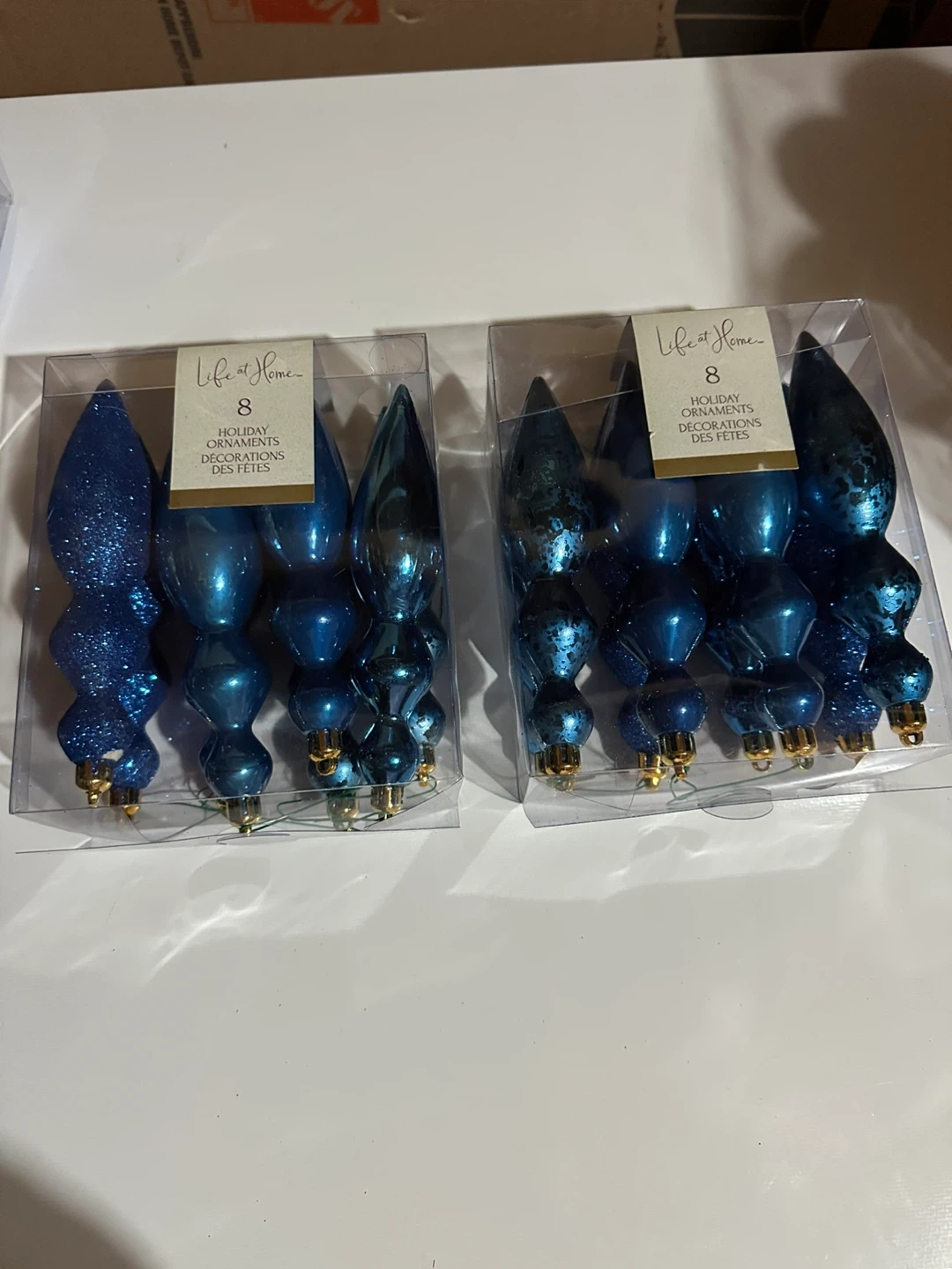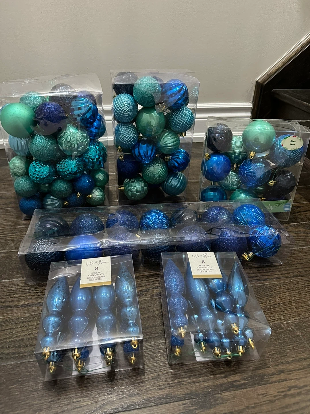 Selling a collection of Life at Home Christmas ornaments in various shades of blue and green. Includes a mix of round ornaments and icicle-shaped decorations. Perfect for adding a festive touch to your Christmas tree!