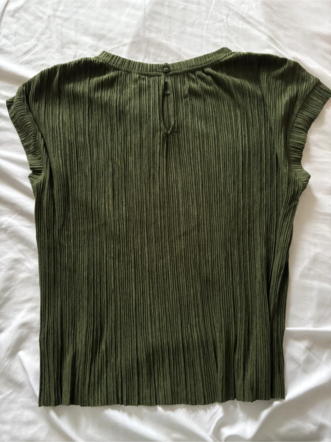 Here's a never worn RW&CO. top in a lovely olive green colour! It's a size XL and has a unique textured design. Perfect for adding a touch of style to your wardrobe