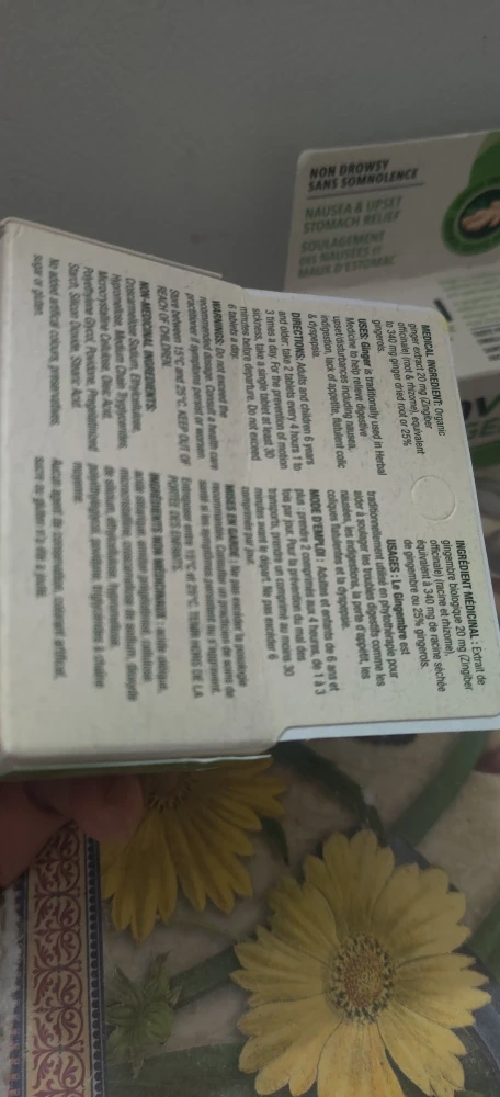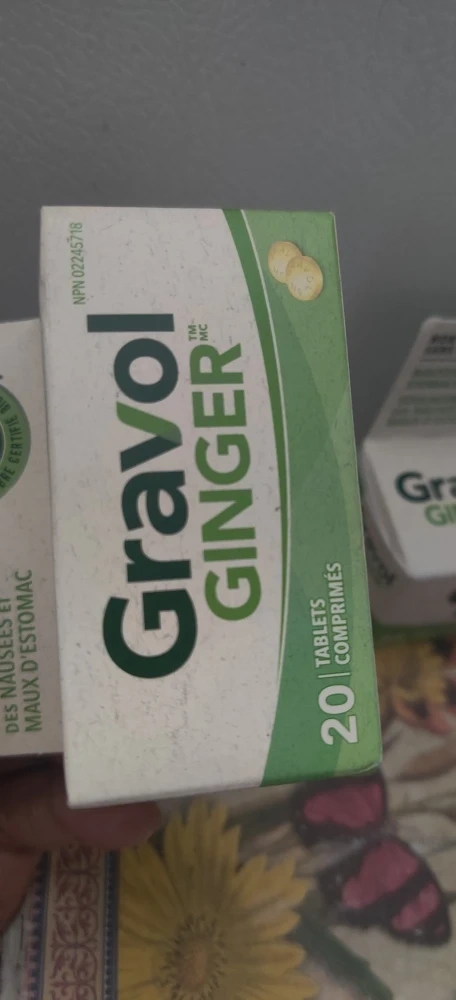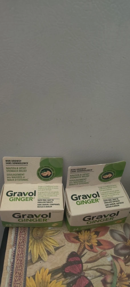 I'm selling2 Gravol Ginger tablets, perfect for nausea and upset stomach relief! Each box contains 20 - 24 tablets. They are taste-free and easy to swallow. Ginger is a traditional herbal medicine.