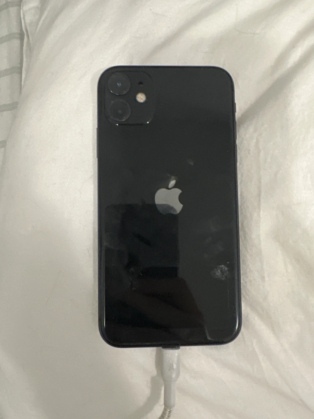Selling my used black iPhone 11. It has some signs of wear, but is still in good working condition. Comes with an Otterbox case for extra protection! Only the screen protector has some cracks not the phone !