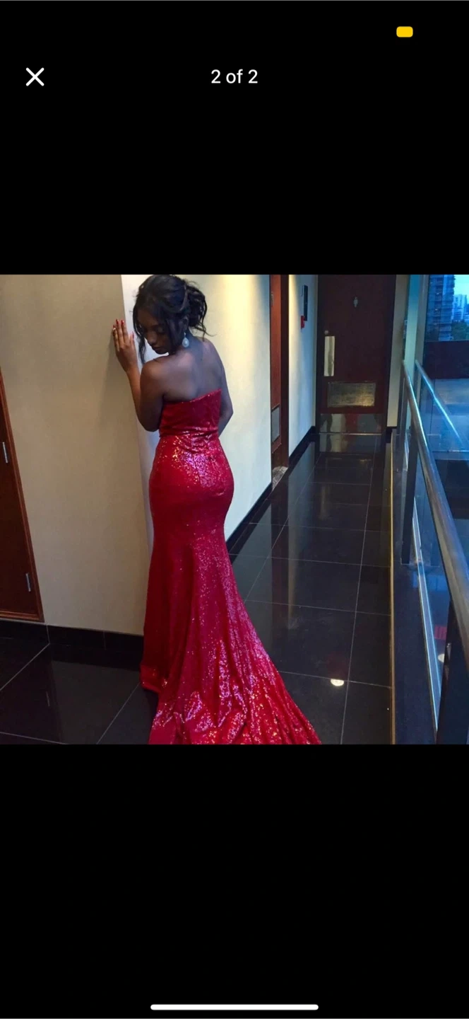 Red Sequin Grad Dress (strapless, sweetheart neckline) Size 0-2