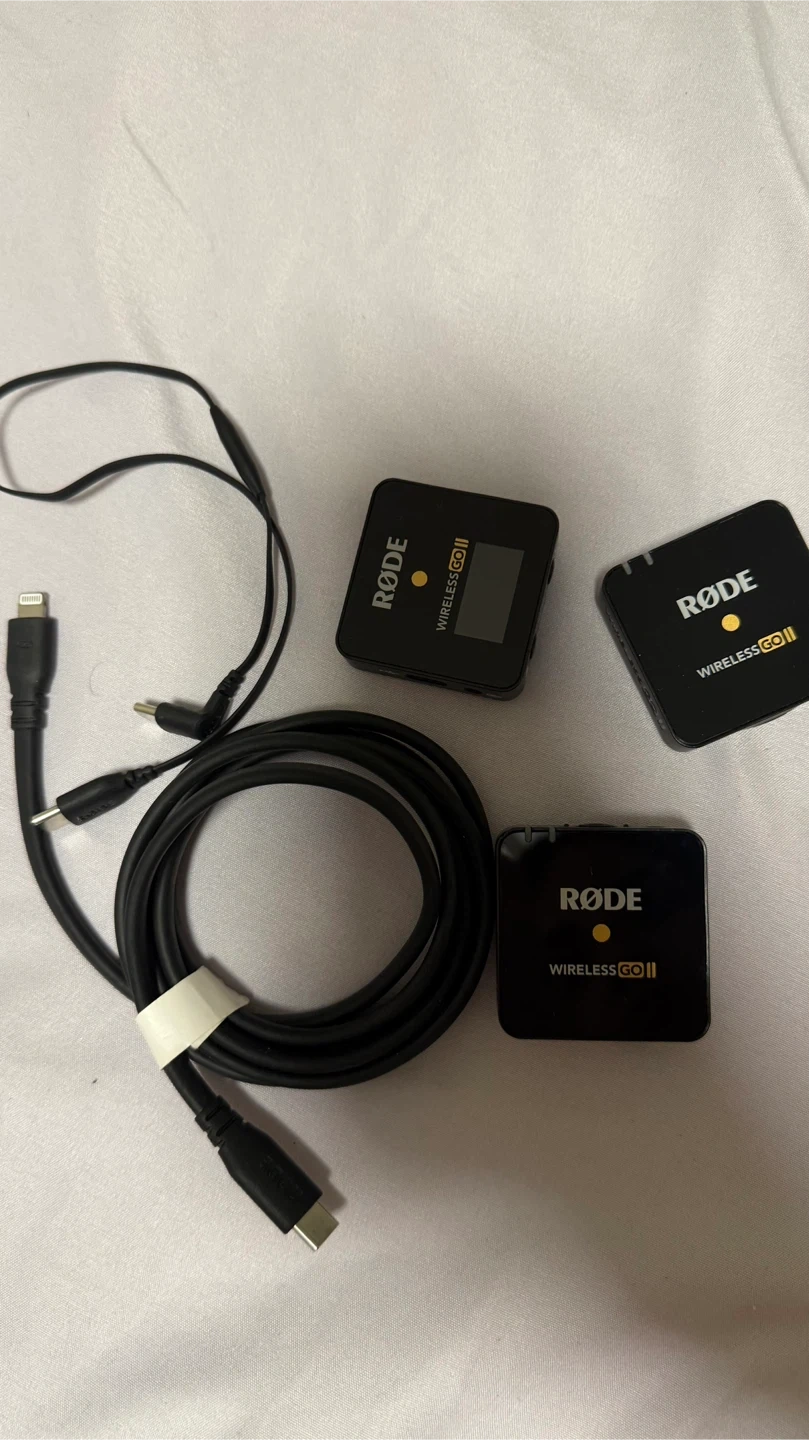 Selling dual Rode Wireless GO II microphone system. It comes with the transmitter, receiver, and cables as shown in the photos. Great for recording audio!