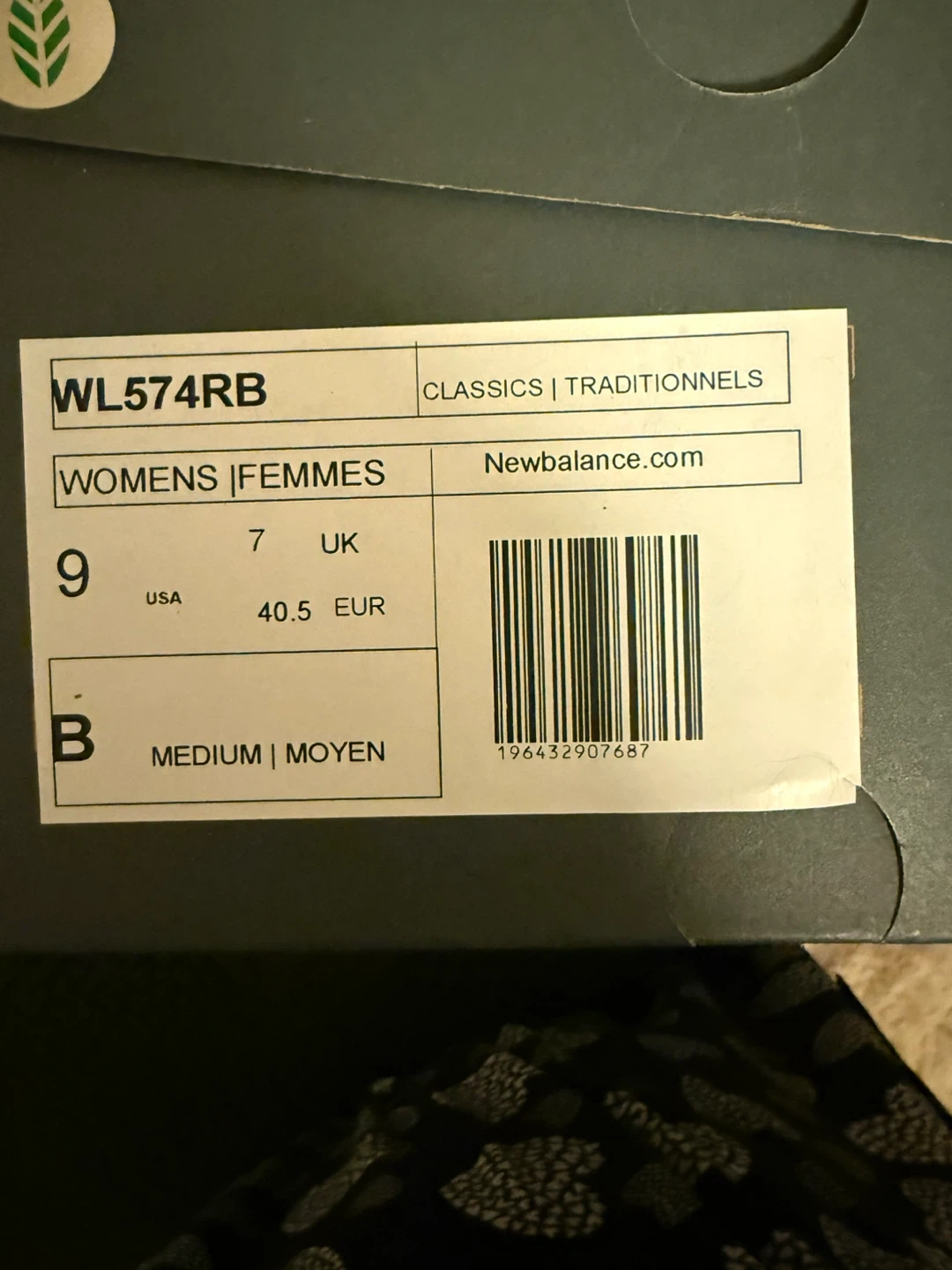 Selling a pair of New Balance WL574RB sneakers in a lovely grey colour! These are a women's size US 9. They come with the original box, making them perfect for gifting or just keeping them safe and sound