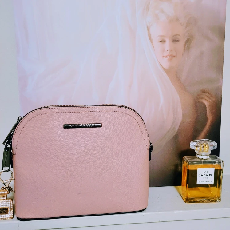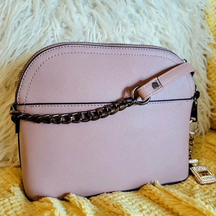 Gorgeous soft pink very feminine purse. Well made smoke free home. Shoulder strap is removable. Small/ medium size clean no damage chain detail on arm strap
