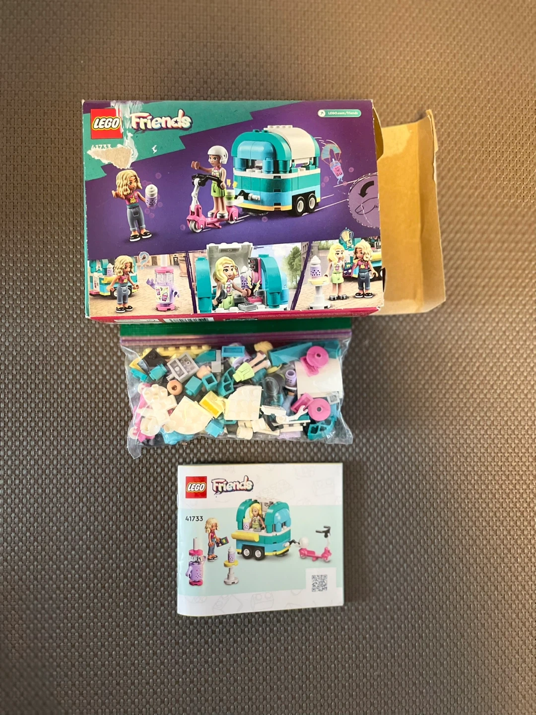 Selling a LEGO Friends Mobile Bubble Tea Shop set #41733. This set is recommended for ages 6+. The box includes 109 pieces to build the bubble tea shop and mini figures. All pieces are included, along with the original box and instructions