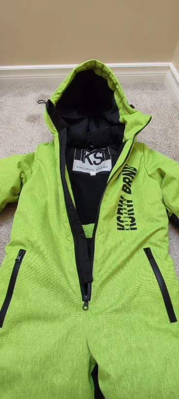 Kaysarow kids snowsuit in a vibrant lime green and black colour scheme! The size is 134 cm. Age 7-9. Great for keeping your little one warm and dry during winter activities!