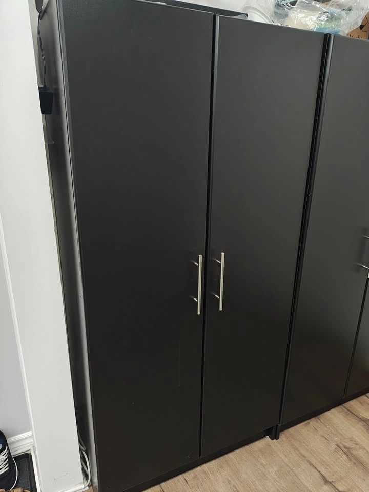 Selling a Prepac Elite 2-Door Storage Cabinet — solid, clean, and perfect for garage, laundry room, office, studio, or home storage.