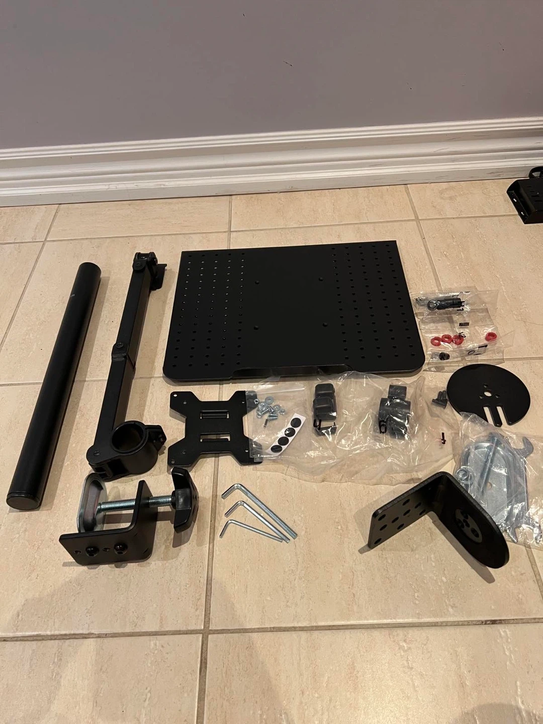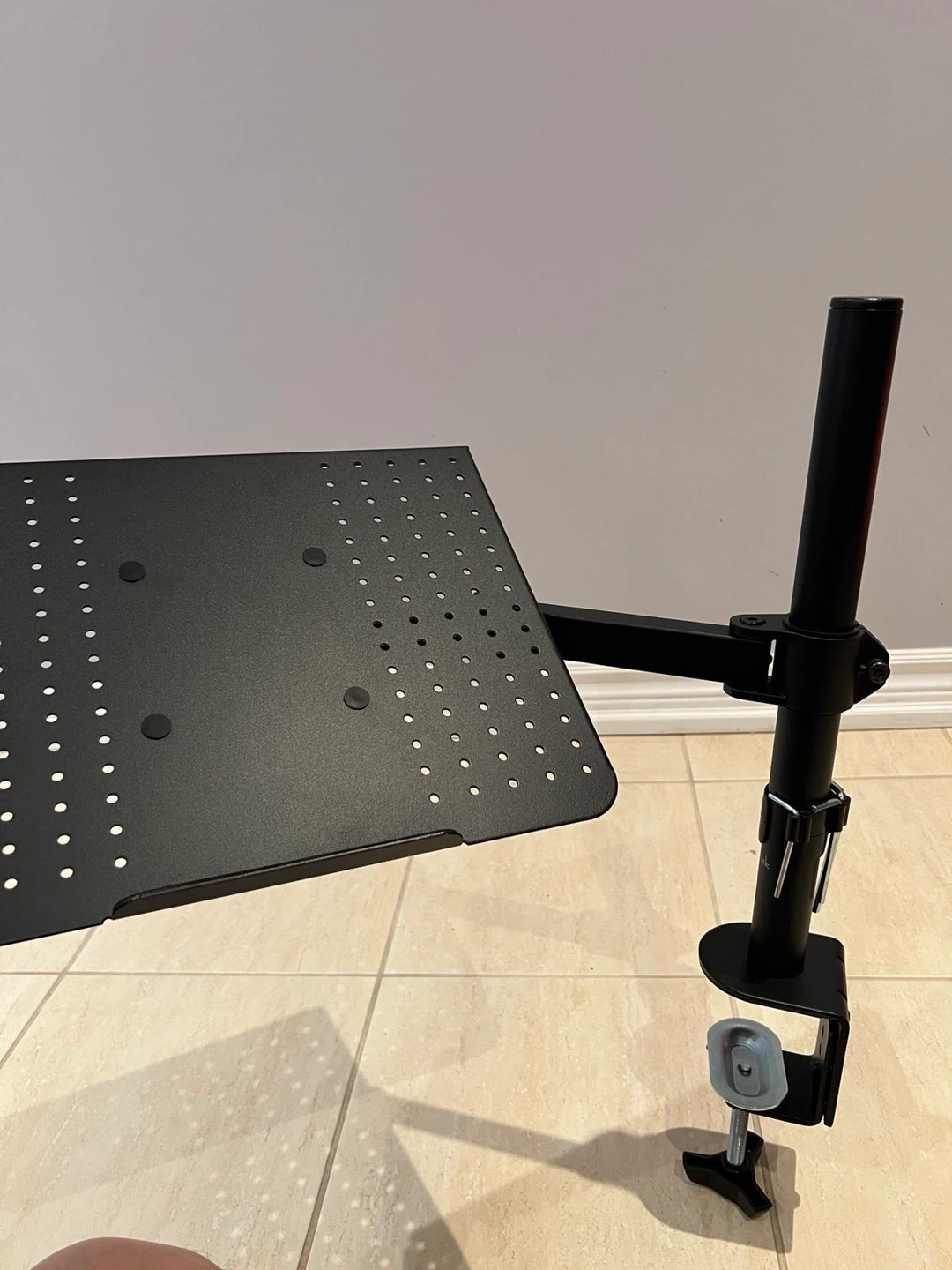 Selling a handy adjustable laptop desk mount stand! It's in great shape and ready to help you create the perfect workspace. This mount can clamp onto your desk and hold your laptop securely, offering flexibility and comfort while you work or browse. Perfect for small spaces or anyone looking to improve their ergonomics