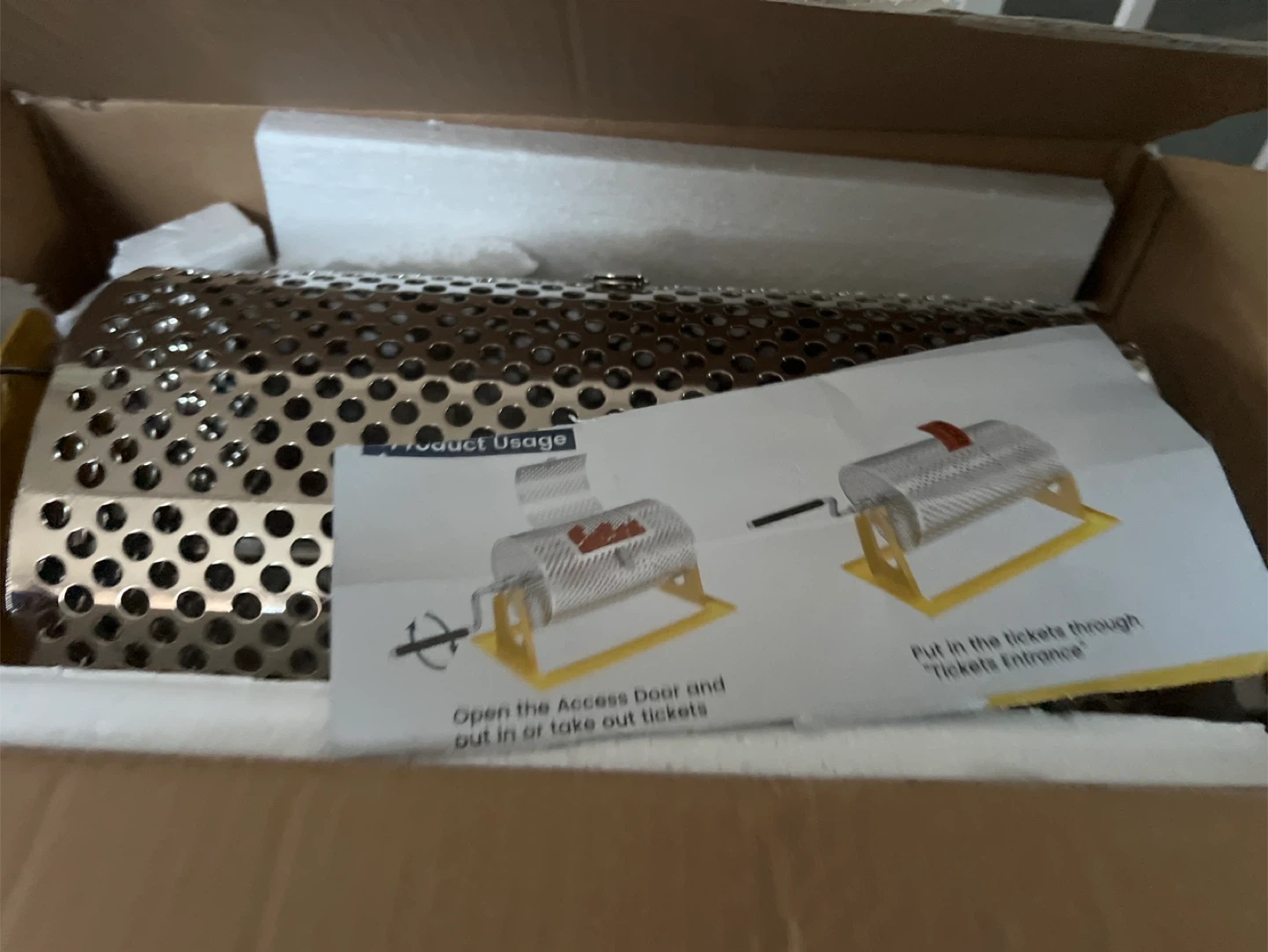 Selling a raffle ticket drum spinner. It comes with its original box and instructions. It is used to put in tickets through the 'Tickets Entrance' and open the access door to take out tickets