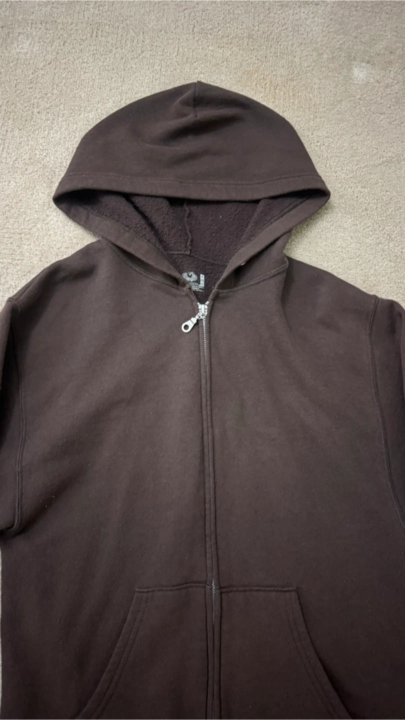 I'm selling a Fruit of the Loom zip-up hoodie in a nice brown colour. It's a size small and made in Mexico. Perfect for layering or just lounging around!