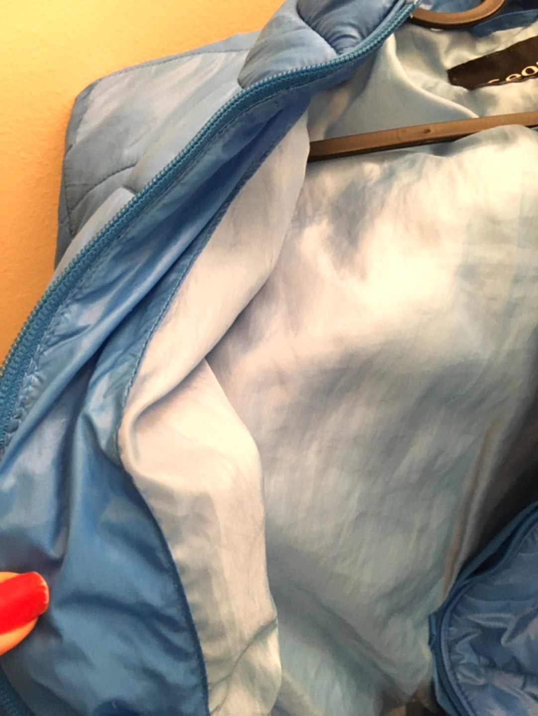 Here's a light blue puffer jacket from George in a size M. It's in great condition and ready for a new owner!
