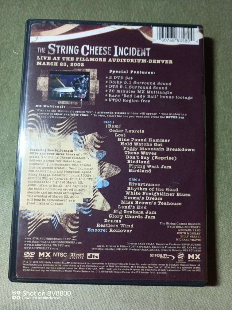 Selling The String Cheese Incident Live at the Fillmore Auditorium-Denver March 23, 2002 DVD. It is a 2 DVD set, Dolby 5.1 Surround Sound, DTS 5.1 Surround Sound, 80 minutes MX Multialgle, and NTSC Region-free