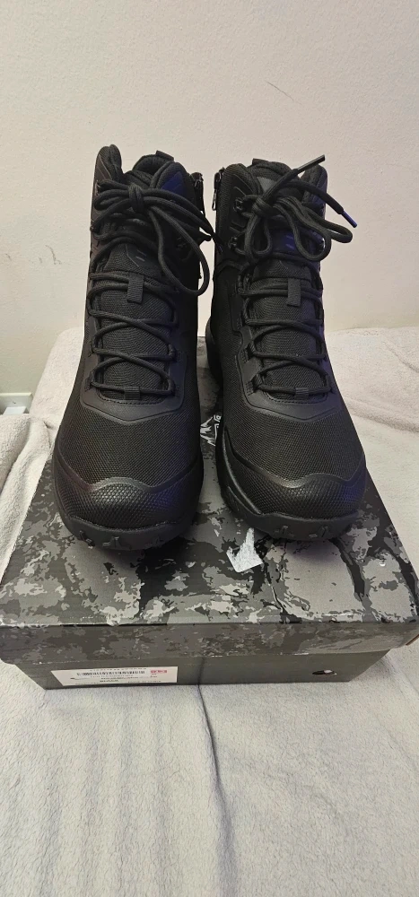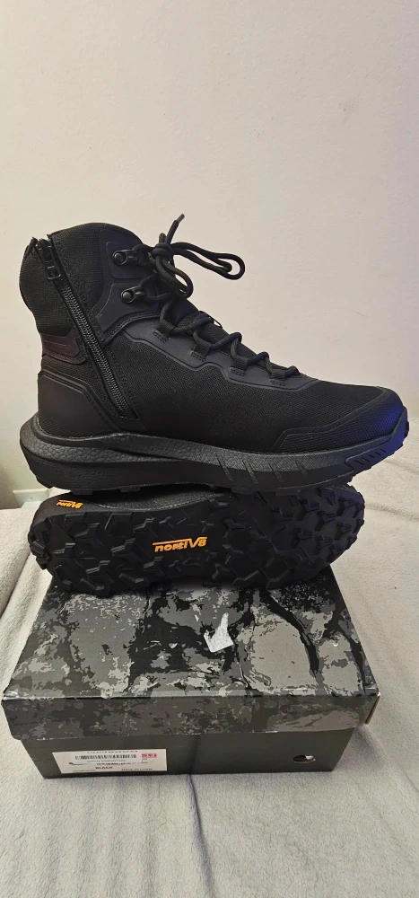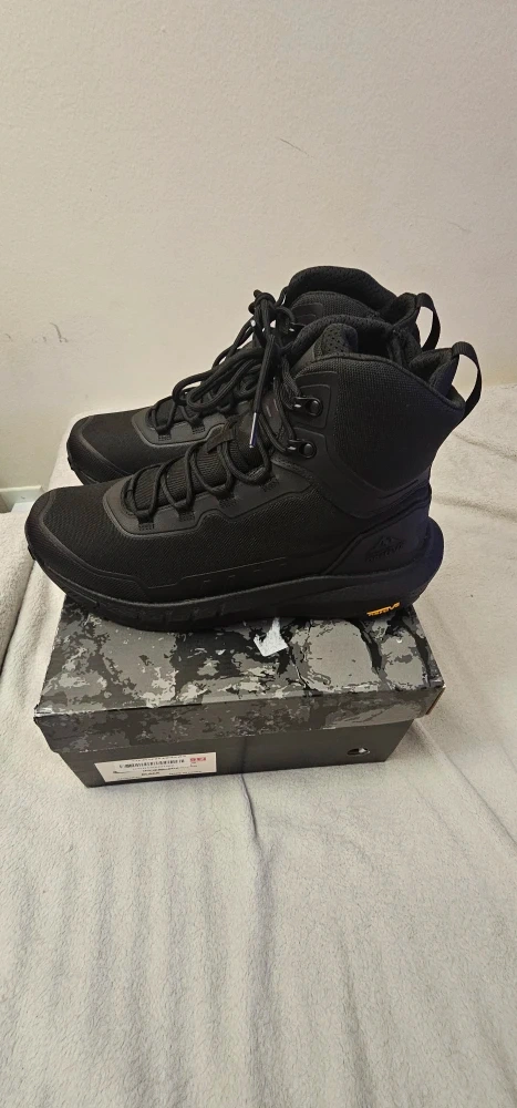 Selling a pair hiking boots in black. These boots are in new condition and come with the original box. Perfect for hiking and outdoor activities!
