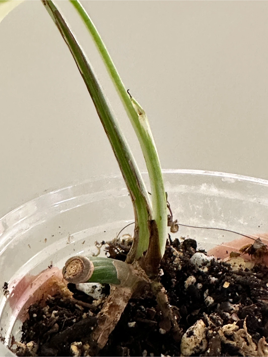 Comes from a high variegation mother, mid cut in soil with third leaf showing up soon!