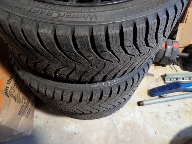 A set of Kumho WinterCraft ICE Wi31 (STUDDABLE) winter tires mounted on 19" alloy rims, with TPMS sensors installed. Tires were used only for 5 days! — basically brand new.