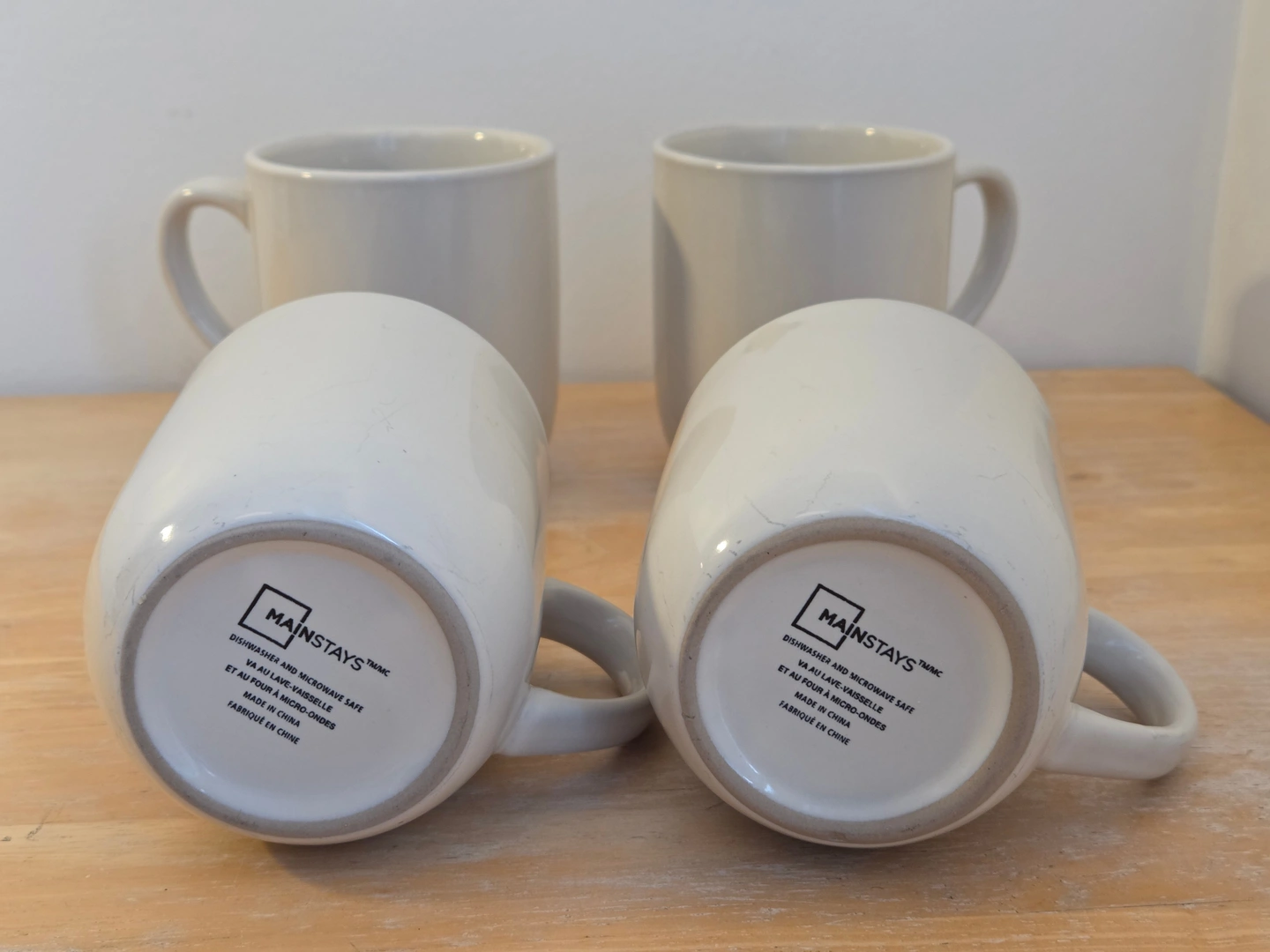Set of 4 beige ceramic mugs from Mainstays, classic design.