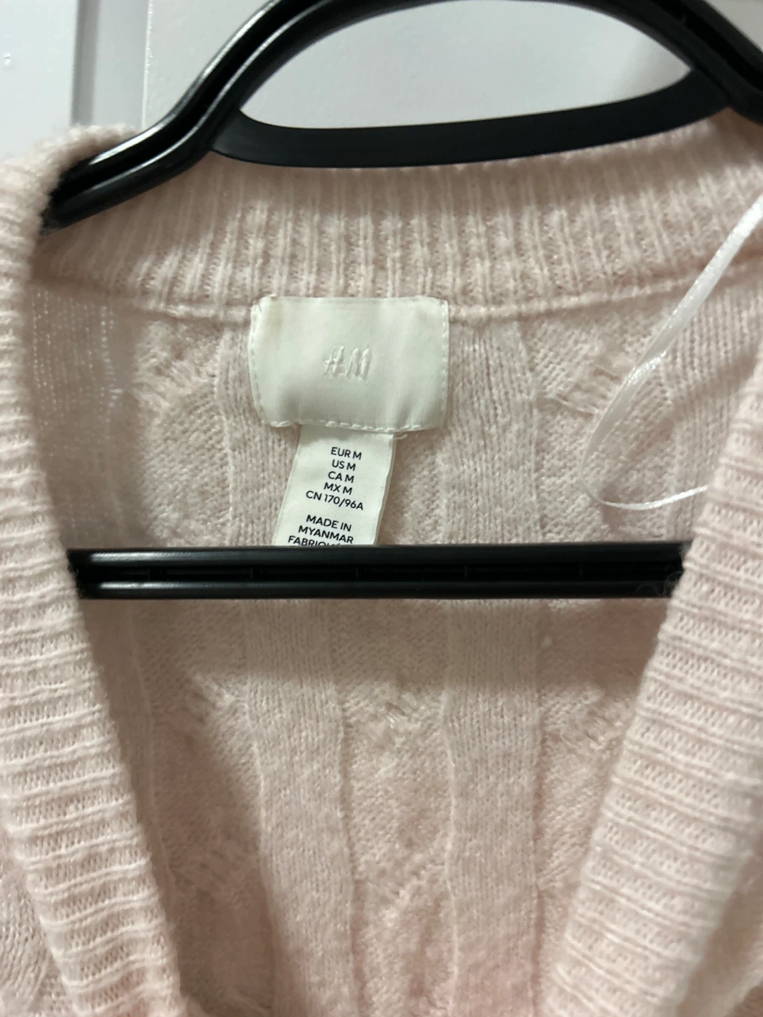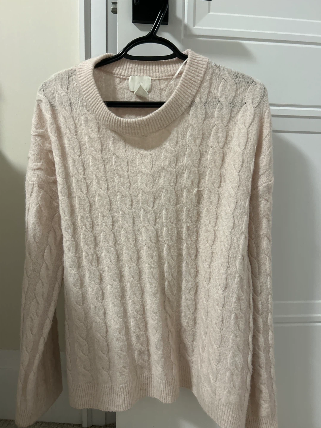 Selling a cozy H&M cable knit sweater in a lovely light pink colour! It's a size medium and in great condition. Perfect for layering or wearing on its own! Cozy and comfy, only worn a few times before!