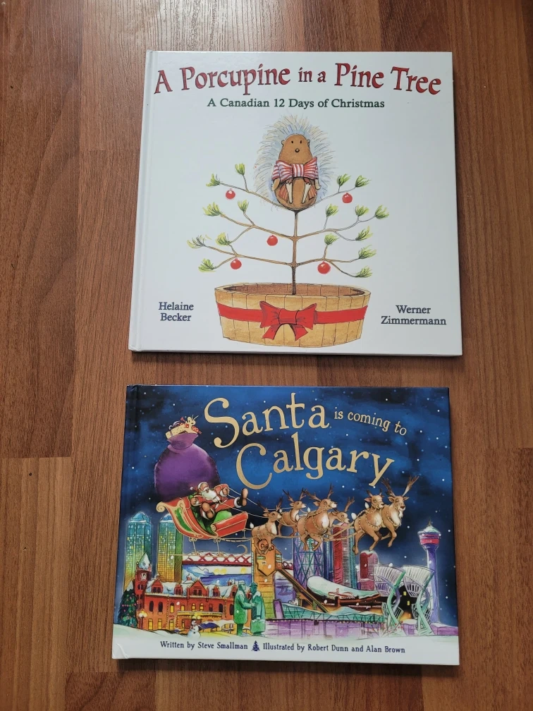 These used children's books, "A Porcupine in a Pine Tree" and "Santa is Coming to Calgary", are a delightful addition to any kid's bookshelf, bringing festive cheer and Canadian charm to story time. One book offers a playful take on the 12 Days of Christmas, while the other imagines Santa's visit to Calgary.
