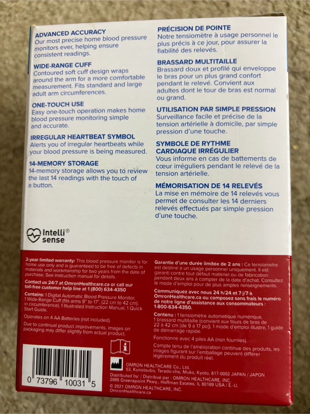 Selling an Omron 3 Series Upper Arm Blood Pressure Monitor.