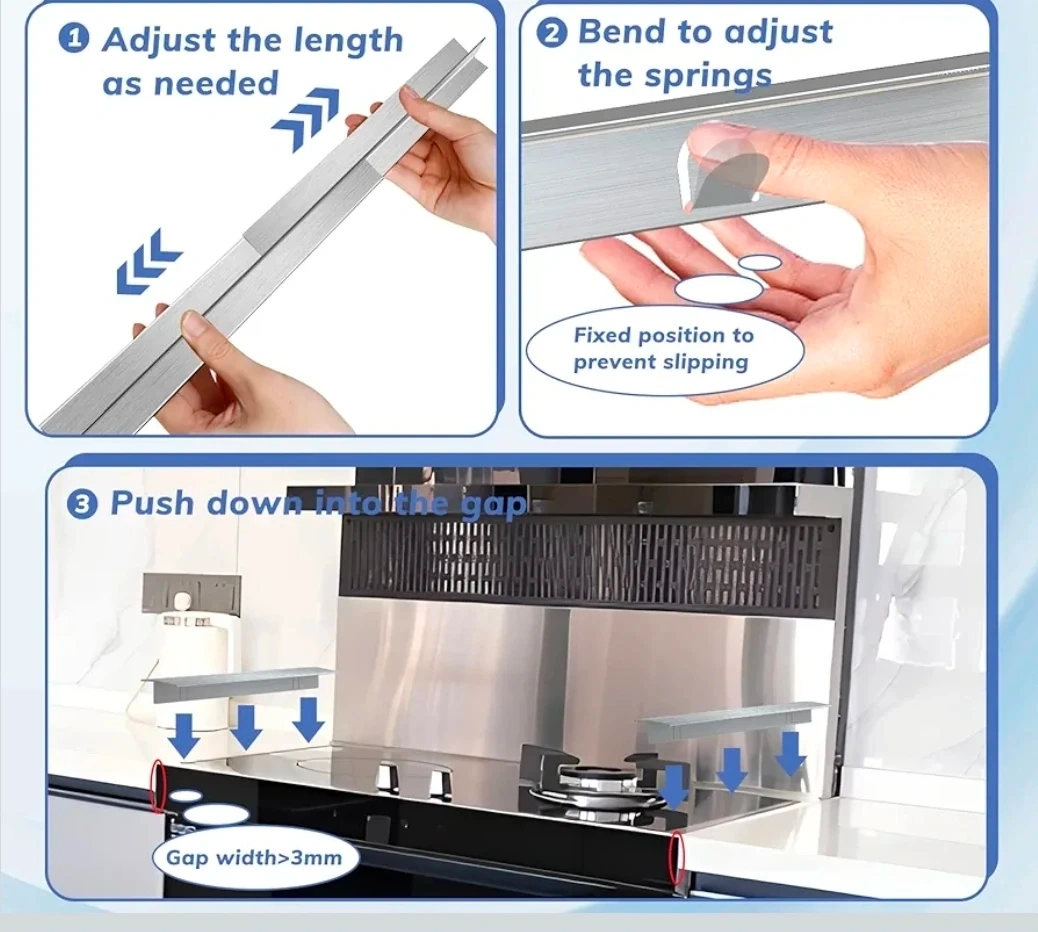 Keep your kitchen clean with these Oiyue stove gap covers! They're made of stainless steel and come in a set of two.