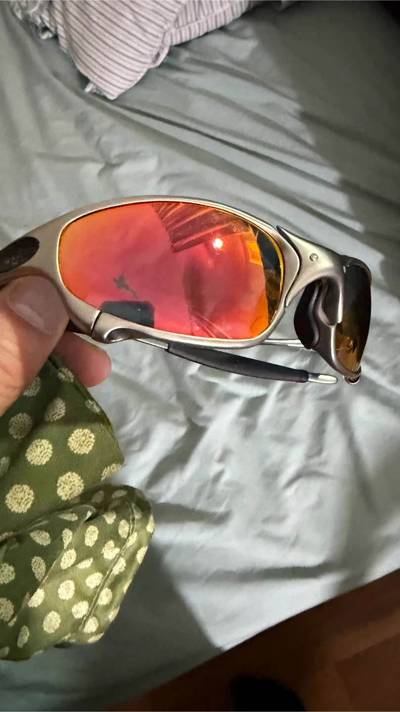 Selling a pair vintage X METAL JULIET of Oakley sunglasses. They are in good condition and come with a carrying bag. Please see pictures for details. Some scratches on red ruby lens .