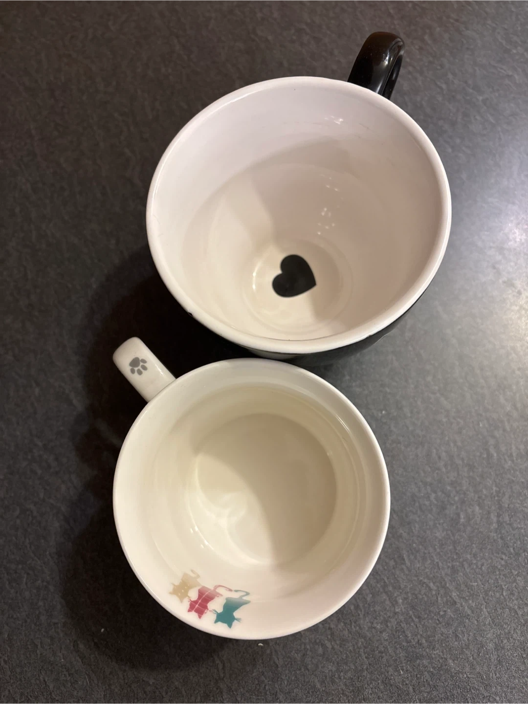 Selling a set of two cute mugs! One is a Cooksmart mug with a fun design, and the other is a black mug with a cat face design. Both are in great shape and ready for your favourite hot beverage